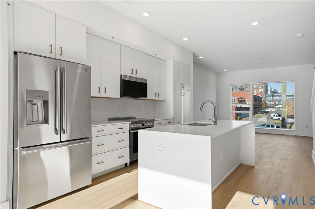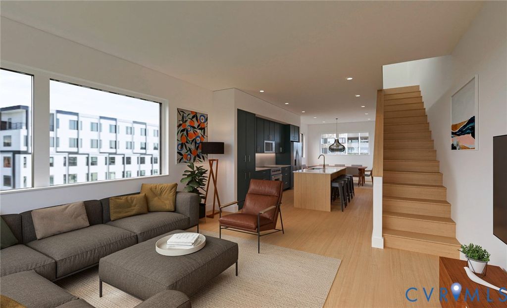 Welcome to Manchester Square, Richmond's new construction townhome community in Manchester featuring modern floor-plans with garages! Step inside this END UNIT, a 3 Level Trestle where this 3 bedroom, 3.5 bath home features 1,662 sqft of spacious living space with a first floor bedroom along with a garage. The interior blends style and function. The open-concept living spaces flow effortlessly and are ideal for entertaining family and friends. A modern kitchen features unique slim-shaker cabinetry, full-height quartz backsplashes, and a spacious island upgraded with waterfall quartz end panels. Modern stainless steel appliances and champagne bronze or black accents add a touch of luxury. The primary bedroom features an ensuite bath with a double vanity with quartz counters and tastefully designed tile shower. An additional secondary bedroom with private ensuite bath as well as the laundry complete the home. The exteriors feature a striking combination of pristine white stucco, warm wood-effect cladding, and industrial-inspired metal accents, creating a bold yet welcoming aesthetic. This unique blend of materials offers a sophisticated, urban look that stands out while seamlessly integrating with its surroundings. Experience the perfect blend of urban vibrancy and outdoor recreation. Manchester Square is just a quick walk from the city's best cafes, breweries, the Floodwall, and Richmond's scenic Riverfront. Embrace a lifestyle filled with both excitement and convenience. Schedule your appointment today, and be the first to call Manchester Square home.