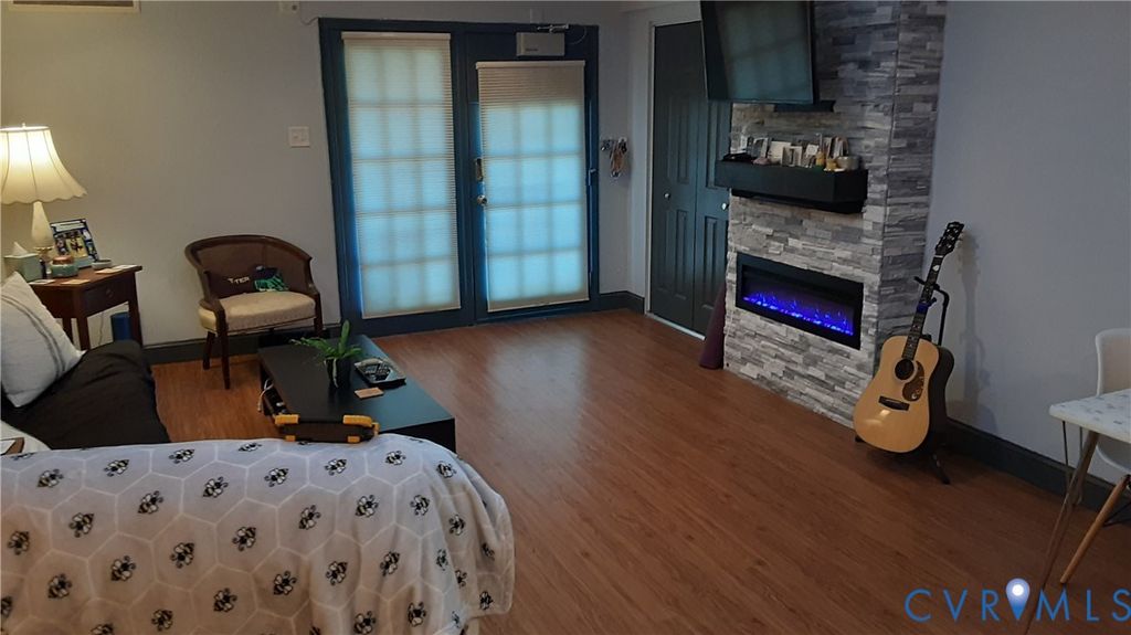 Very rare opportunity to own this ground level Handicap Accessible condo. Features a designate handicap parking space, auto front door, roll in shower, roll under counters and easy to maneuver laminate flooring. The great room contains a beautiful fireplace, and the primary bedroom has direct access to the bath and contains a walk-in closet. Bonus room for possible second bedroom. This unit has an~8x10 storage area assigned to it as well. A unique feature of the Hamlet is almost everything is covered by the HOA! No water, gas or electric bills to worry about. They are included! No worries about repair or replacing HVAC systems or Water Heaters, that is covered too! The Hamlet condos also feature a community pool and serene pond. Conveniently located at Staples Mill and Dumbarton, just off interstate 64.