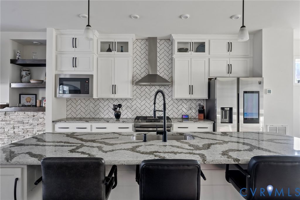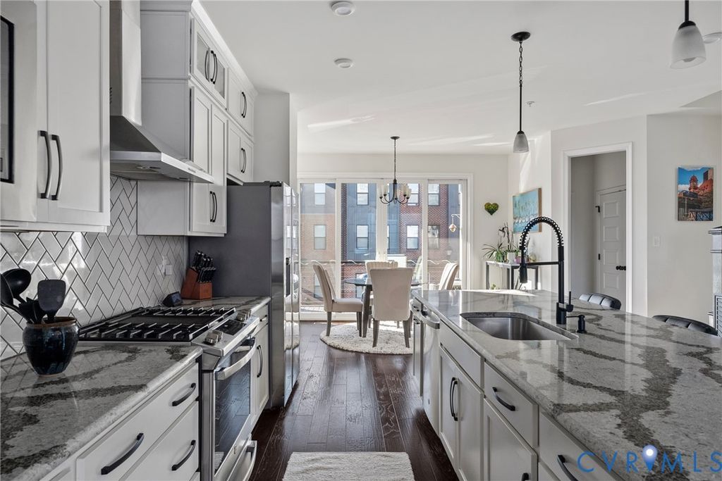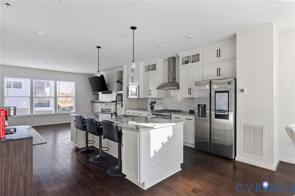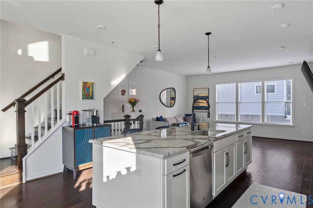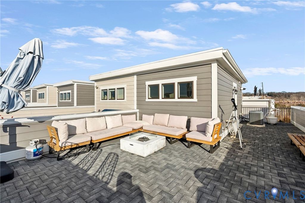 This beautifully appointed townhome offers 3 bedrooms, including a first-level bedroom with a full bathroom, 3 full baths, and 2 powder rooms"”one on the main living level and another on the rooftop level. The show-stopping rooftop retreat features a huge west-facing deck with stunning sunset views, city skyline vistas, and seasonal river views during the winter months. A custom rooftop bar enhances the space with butcher block countertops, cabinetry, dishwasher, and beverage refrigerator"”perfect for entertaining. Inside, the kitchen features quartz countertops, while the primary bathroom is upgraded with ceramic tile, a frameless glass shower door, and granite countertops. The living area is anchored by a natural gas fireplace with stone surround, wood mantel, and custom built-ins, creating a warm and inviting atmosphere. All appliances convey, including a newer washer, dryer, and refrigerator, making this home truly move-in ready. Rocketts Landing is a hip riverfront community situated along the picturesque James River. These low-maintenance townhomes provide more time to enjoy life's best offerings"”nature, arts and entertainment, vibrant nightlife, and more. Residents enjoy an exceptional array of on-site and nearby amenities, including a riverfront pool with sundeck, modern poolhouse, fitness center, scenic bike trails, boating access, and a diverse selection of shopping and dining options. With so much to see and do, Rocketts Landing offers a lifestyle that truly has it all.