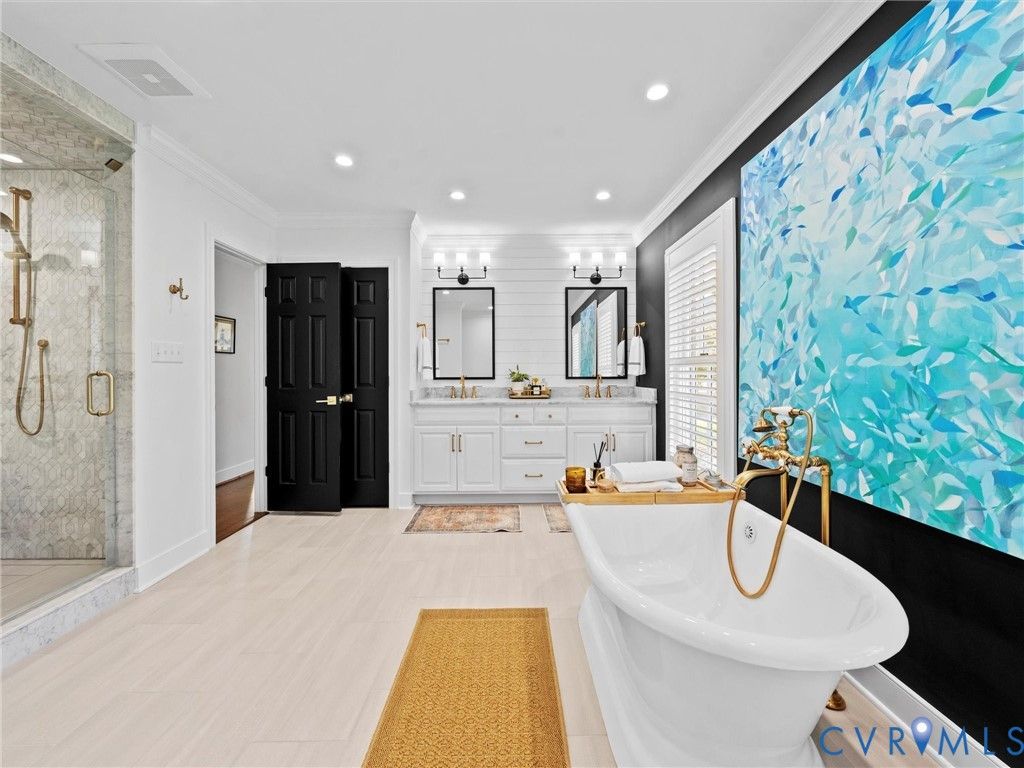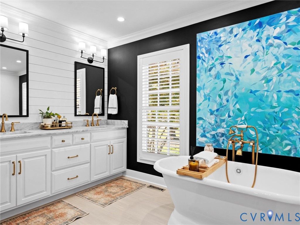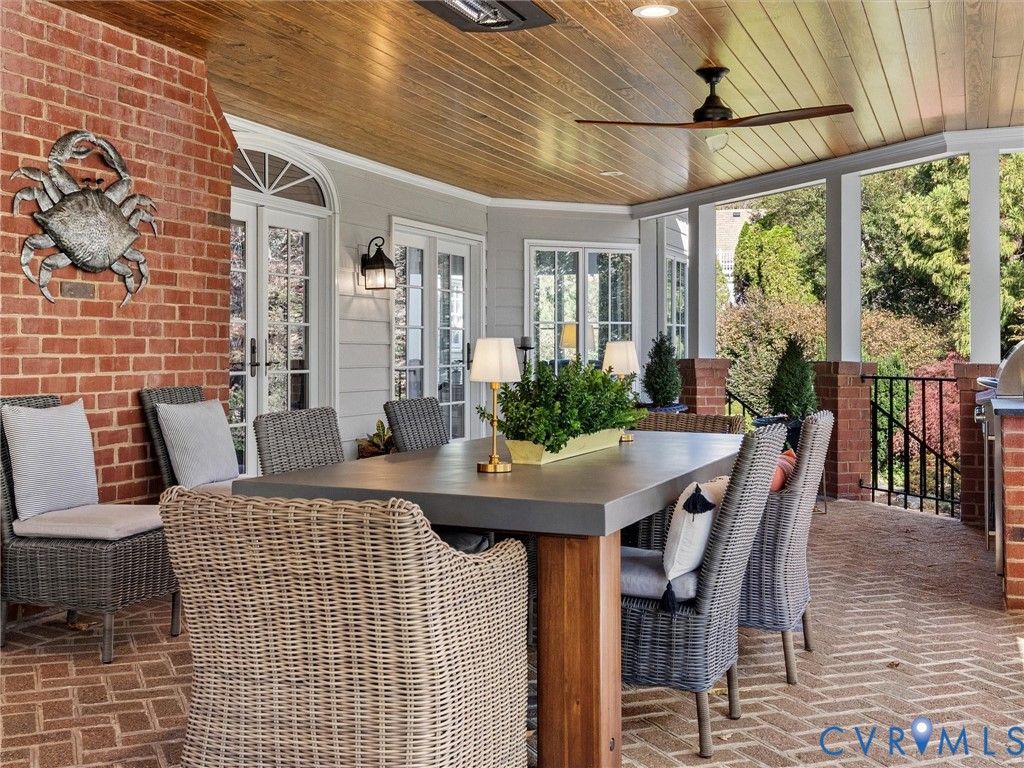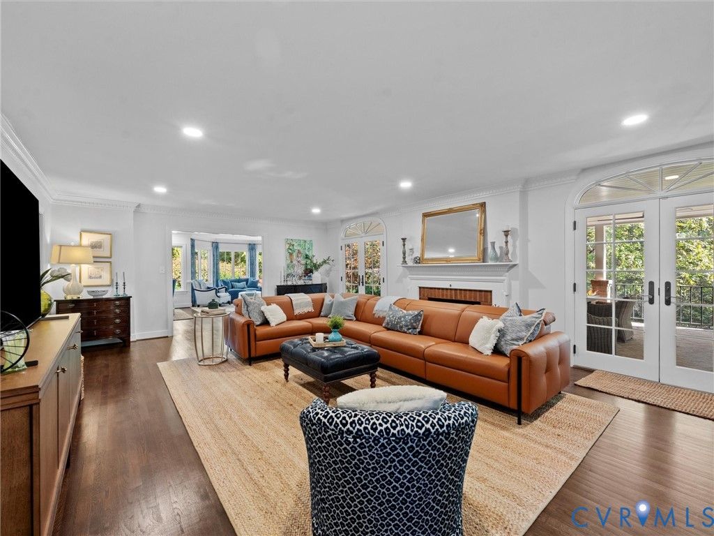 This beautifully updated classic Cape in Windsor on the James blends timeless architecture with extensive, thoughtful upgrades throughout. The exterior has been completely refreshed with new Hardiplank siding, painted shutters and doors finished in a European Fine Paints process, modern lighting, enhanced parking, and walkways, and professionally maintained roofing. Inside, the home shines with refinished floors, new paint, upgraded HVAC systems, LED lighting, and a full security system. The heart of the home features a renovated kitchen with quartz countertops, some new appliances, a bar center with pellet ice maker, beverage refrigerator, and a cozy gas fireplace. Living spaces are elevated with picture molding, custom office built-ins, and a reimagined laundry and hall bath. The primary suite offers a true retreat with a gas fireplace, custom closet systems, and a new spa-like bath with heated floors, steam shower, marble finishes, and a freestanding tub. Upstairs bedrooms and baths have been fully updated with new flooring, lighting, fixtures, and finishes. Outdoor living is exceptional, highlighted by a covered patio with a fireplace, grill station, leathered granite countertops, ceiling fans, and recessed Bromic heaters"”perfect for year-round enjoyment. A fully improved garage, encapsulated crawl space, and meticulous annual maintenance complete this move-in-ready home that combines classic charm with modern comfort at every turn.
