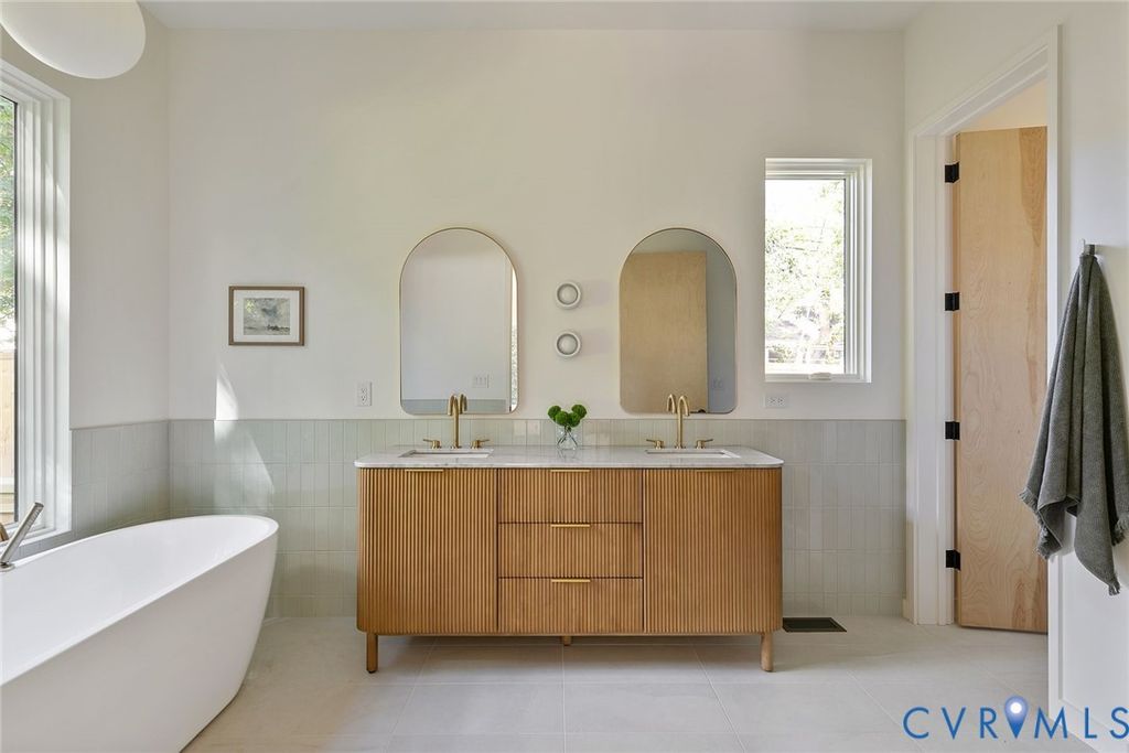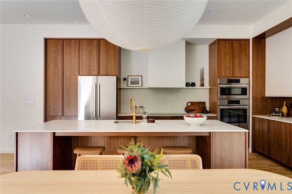 Discover modern Scandinavian living on Richmond's iconic Cherokee Road. This custom new home built by Spruce Construction blends clean architectural lines, natural materials, and abundant light to create a warm, timeless retreat. The exterior showcases thermally modified, low maintenance wood siding, aluminum windows, and a standing seam metal roof. A matching two car garage, paved driveway, sod, irrigation system, and landscape lighting complete the home's curb appeal. Inside, soaring 10 foot ceilings and 8' x 8' windows flood the open layout with natural light. The chef's kitchen features locally crafted cabinetry, sleek Dekton countertops, and premium Bosch 800 Series appliances, perfectly designed for everyday living and entertaining. The first floor primary suite includes a spa like bath and a pass through closet system. Upstairs, 10 foot ceilings continue with a spacious flex room, two bedrooms with walk-in closets, and a stylish hall bath with terrazzo flooring and Fireclay tile. The expansive basement offers 9.5 foot ceilings, a media room/den, and a private en suite guest bedroom, making it ideal for hosting. 7438 Cherokee Road offers rare Scandinavian-inspired design in one of Richmond's most desirable locations.