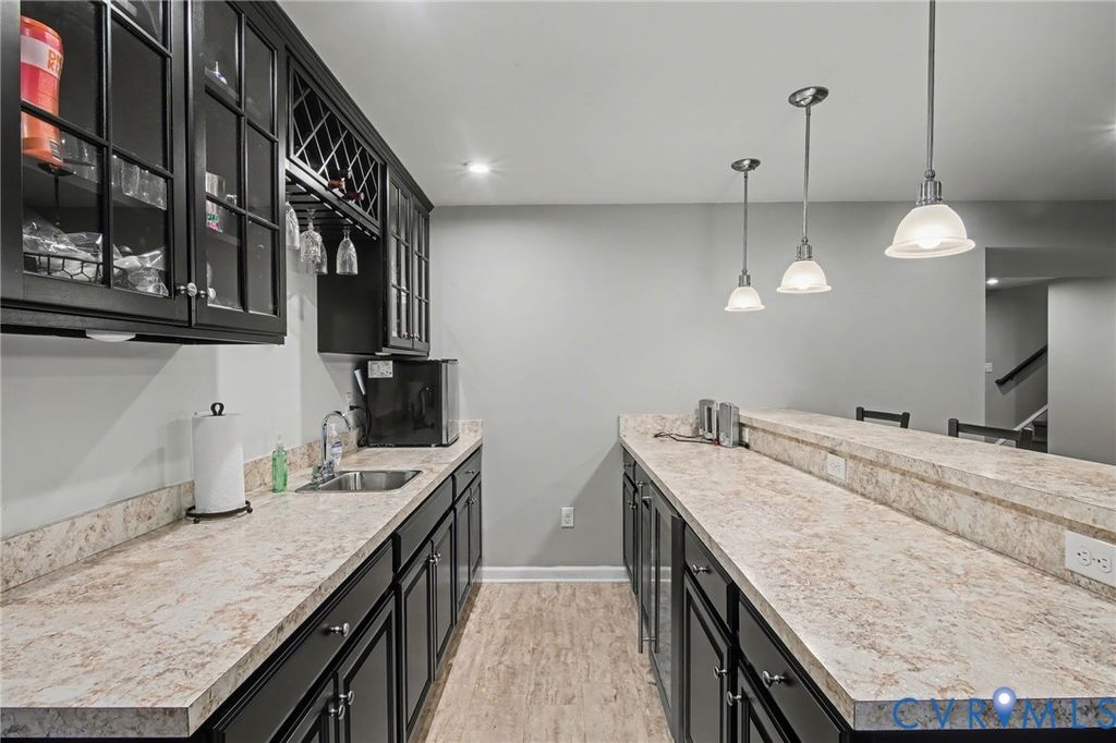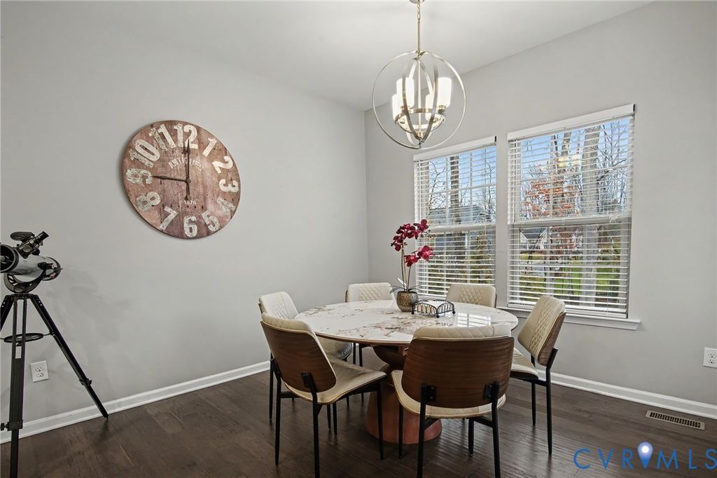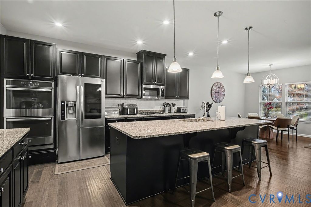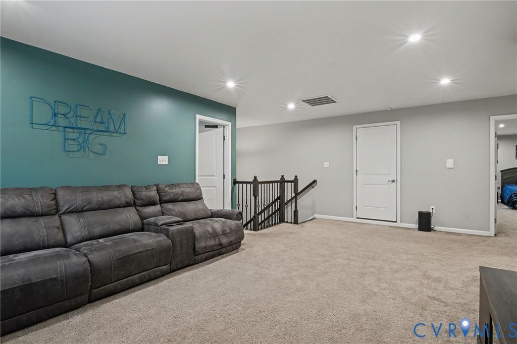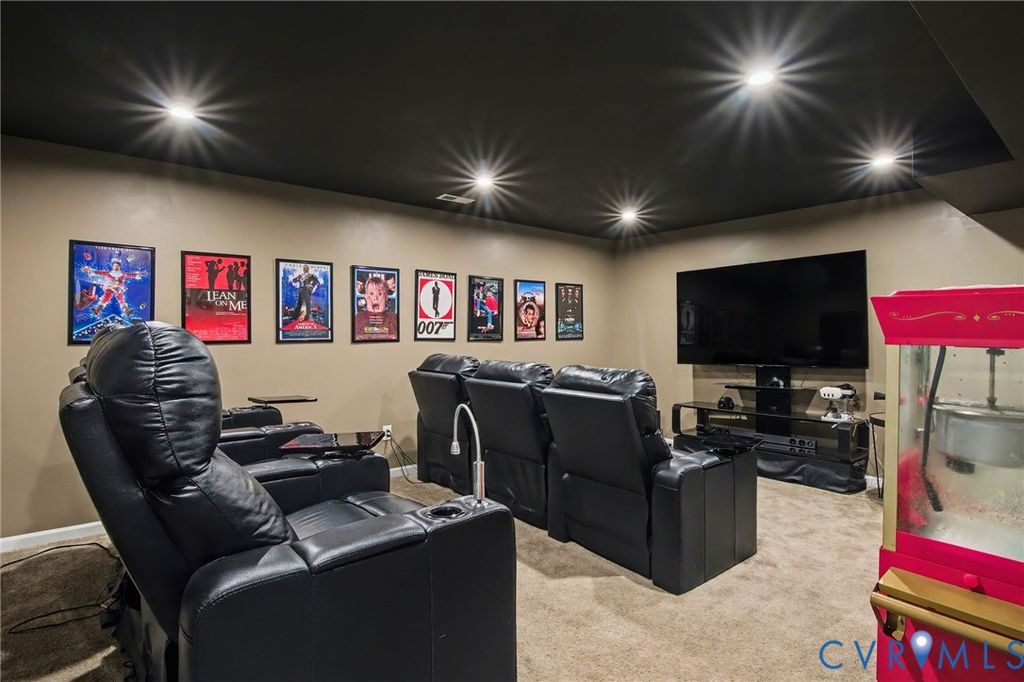 Welcome to this absolutely gorgeous 5 bedroom, 4 bath home with a fantastic location in Midlothian. Located just minutes from 288, Powhite Parkway, Midlothian or Hull Street. Built in 2018 and exceptionally well cared for this home is move in ready and offers features galore. The first floor offers an entertainers flow with a beautiful upgraded kitchen that flows seamlessly into the family room with stone fireplace from floor to ceiling. The primary suite is just off the family room and features a walk in closet, separate tub and shower, raised double vanity and more. The private office finishes off the first floor. The second floor offers three private bedrooms as well as a loft area for a second living area for guests. The rear deck overlooks the backyard where your imagination can go wild. The large rear patio offers seating, plenty of space for entertaining and also offers an additional stepped down patio area/currently used as a half basketball court. The outdoor space is simply amazing and could be used in a multitude of different ways. Walk inside from the patio and enter into an additional living space prefect for a rec room, play room or just additional living space. There is a bedroom as well as a movie room for everyone to enjoy. Unique to only a few sections of the community, the HOA also includes grass cutting and maintenance so you can spend more of your time relaxing and enjoying your home. This home truly offers modern features, exquisite design and seamless functionality.