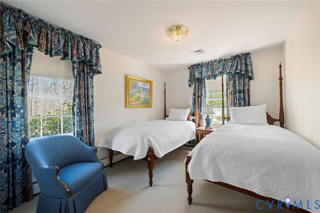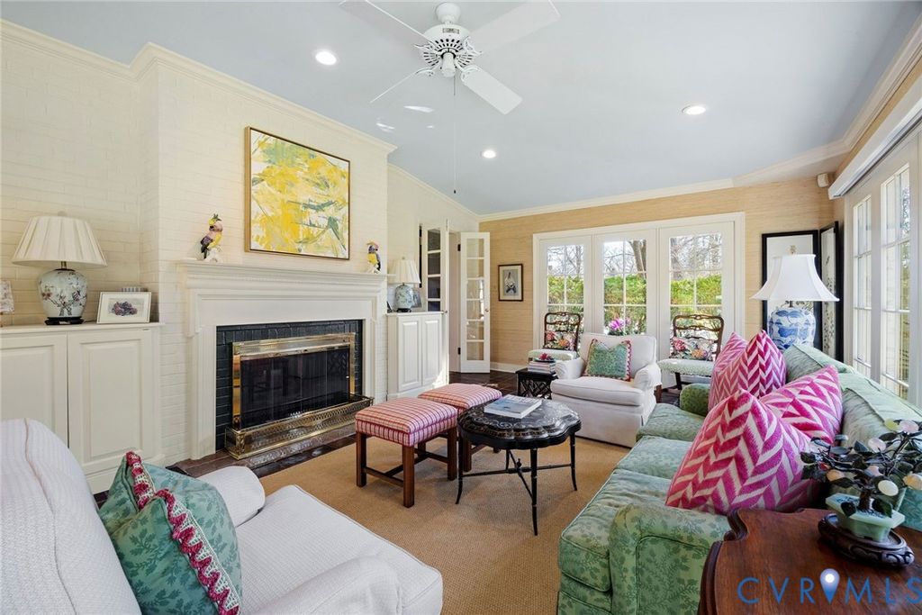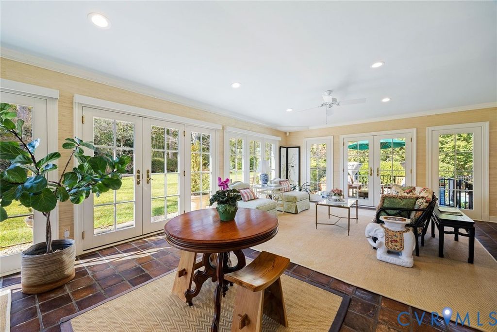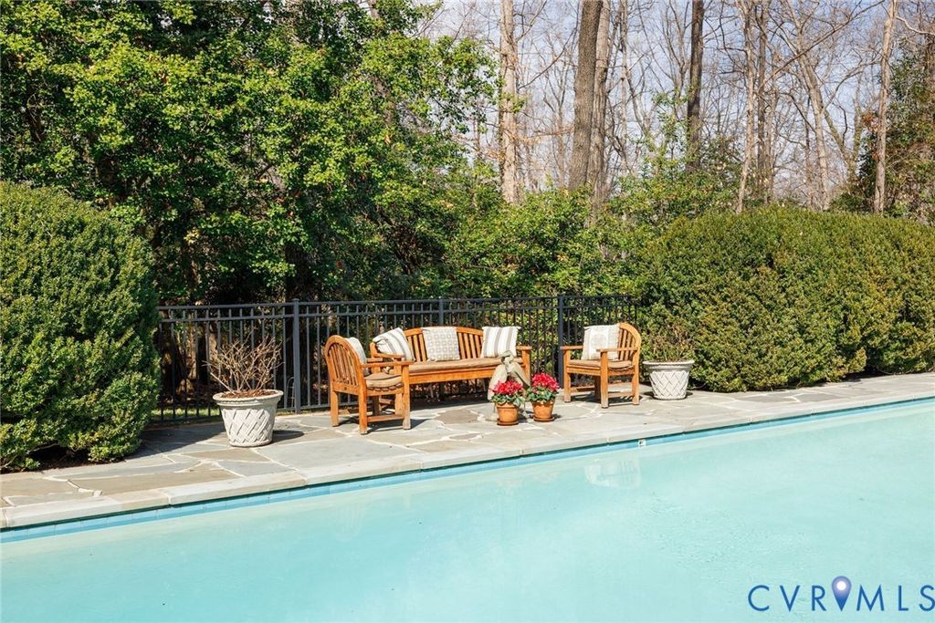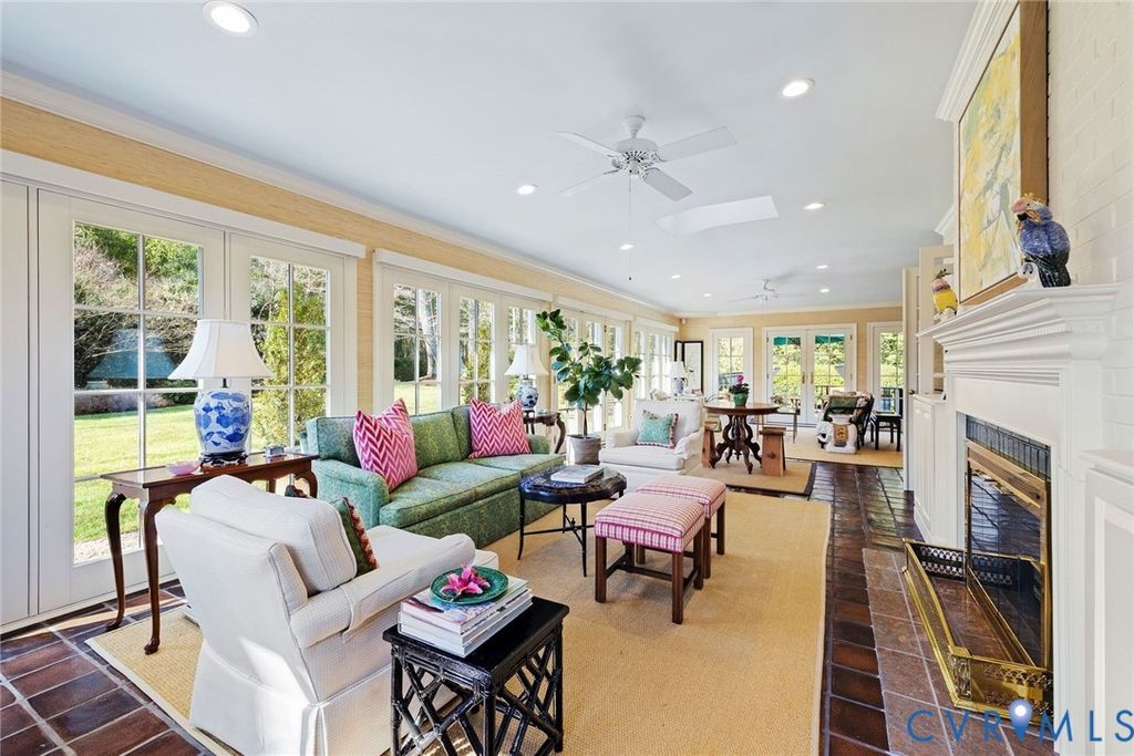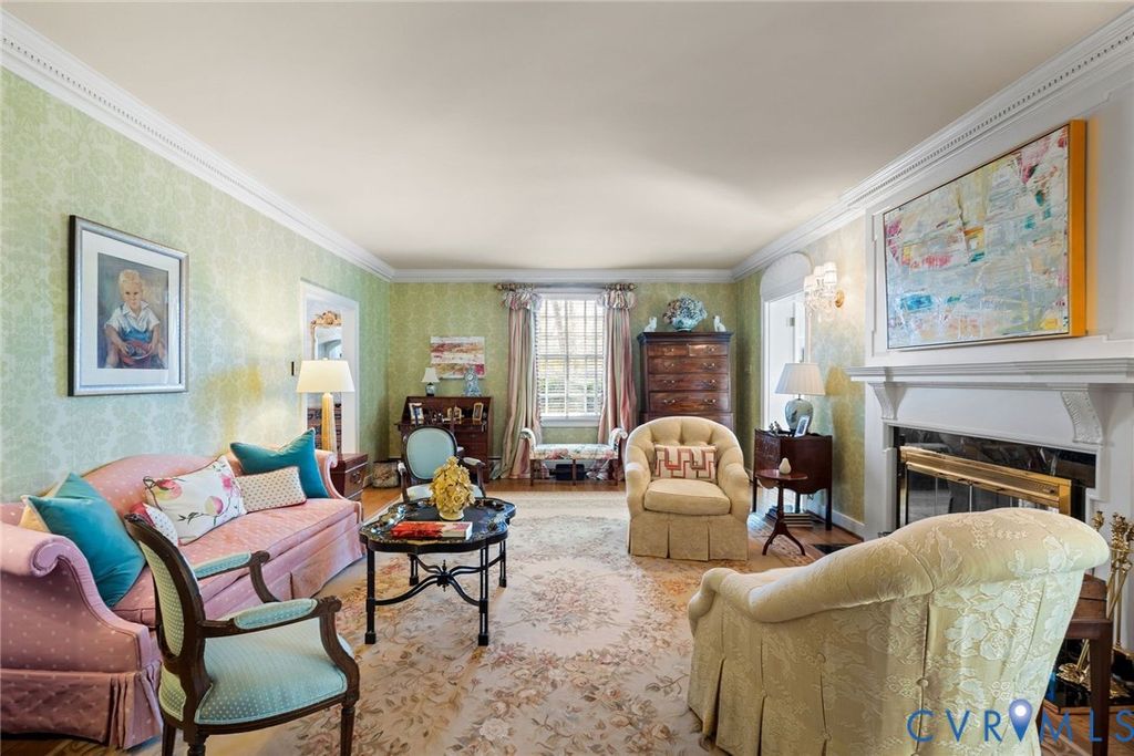 Rare offering in Richmond's historic Windsor Farms area available for the first time in over 35 years! This elegant brick residence with slate roof is privately set back from the road, surrounded by mature boxwoods and exquisite gardens. A circular driveway with cobblestone detailing sets the tone for the remarkable property beyond. The home welcomes you with a light-filled grand foyer featuring arched openings to the dining room, offering sightlines from front to back. Gorgeous pegged hardwood floors and a stunning staircase anchor the space. The formal living room is spacious and refined, showcasing a two-sided gas fireplace, exceptional millwork, and dentil crown molding. A spectacular wraparound sunroom, truly a showstopper, features three walls of windows, two ceiling fans, French doors, and a wet bar with mini fridge and ice maker. The formal dining room offers pegged hardwood floors, a china closet, and a wall of windows with breathtaking views of the pool and grounds. The eat-in kitchen includes banquette seating, high-end appliances such as Sub-Zero and Wolf, gas cooking, and a door to the grilling patio, perfect for entertaining. A cozy den/office features two walls of built-ins and a gas fireplace. Upstairs, the home offers three bedrooms, three full baths, and an office that could be reconfigured as a fourth bedroom. The spacious primary suite includes hardwood floors, a fireplace, two double closets, and an en-suite bath. The walk-out basement provides a recreation room, a fifth bedroom with en-suite bath, abundant storage, a laundry area with sink, and a workshop. The grounds are truly extraordinary, featuring two fenced gardens, mature trees, winding pathways, and delightful surprises at every turn. Additional highlights include a charming 1 bedroom, 1 bath guest house with living room, a garden house, the pool with a beautiful stone surround, an expansive side yard. A rare combination of privacy, elegance, and exceptional outdoor living in the heart of Richmond.