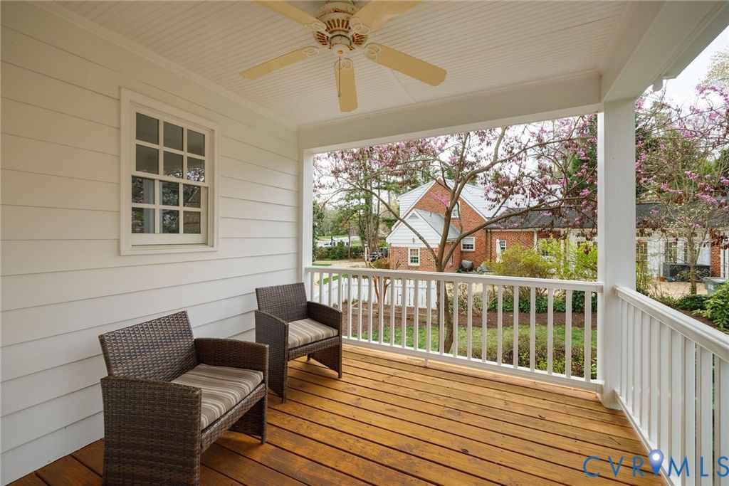 318 Lakewood Drive is ideally located in the desirable Westham neighborhood and offers timeless charm with thoughtful updates throughout. A welcoming covered front porch and foyer with a quaint window set the tone for the warmth beyond. Hardwood floors and beautiful millwork flow throughout the home. The spacious living room is highlighted by a large picture window, a fireplace, dentil crown molding, and wide doorways that create an open transition into the formal dining room. Just beyond, the family room offers a gas fireplace and French doors opening to the rear patio. A sunroom, currently used as a mudroom, adds flexible space, along with a dedicated home office. The eat-in kitchen is thoughtfully designed with a center island with seating, granite countertops, stainless steel appliances, and gas cooking. Completing the first floor is a guest bedroom suite featuring a walk-in closet and an en-suite bath with a double-sink vanity. Upstairs, the primary suite is a true retreat with built-ins, an electric fireplace, a private deck overlooking the rear yard, and a spacious en-suite bath with dressing area, double-sink vanity, soaking tub, separate shower, and large walk-in closet. A bonus space off the suite is ideal for a fitness area, office, or sitting room. Three additional bedrooms with hardwood floors, two full baths, and a rec room area complete the second level. The third floor offers excellent potential for future expansion. Situated on nearly half an acre, the property features a rear patio, terraced gardens, and a detached shed, ideal for storage or gardening. Do not miss this exceptional home in a wonderful neighborhood, just minutes from The Village and Tuckahoe Shopping Centers, top-rated schools, and more.