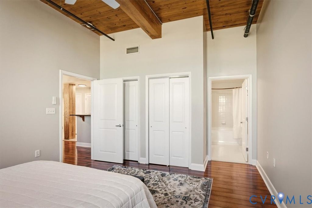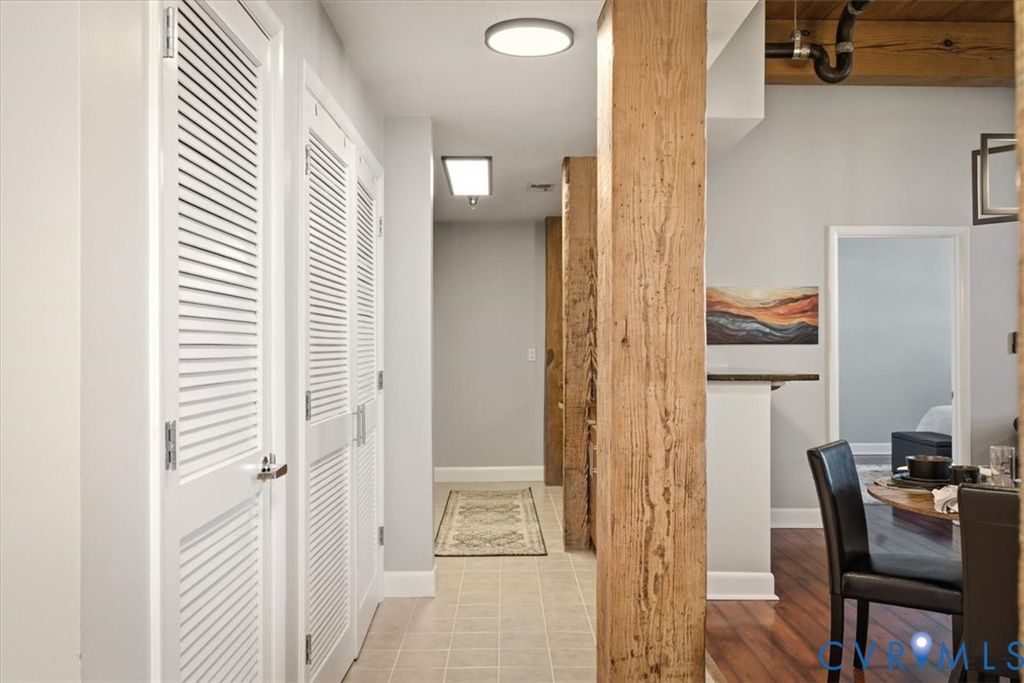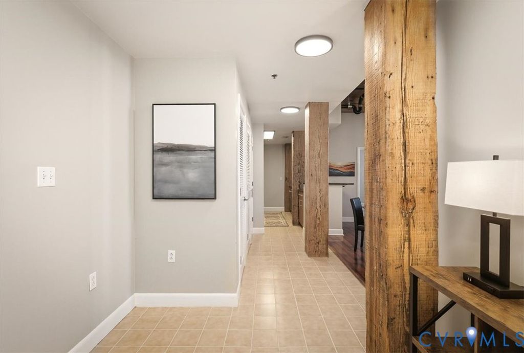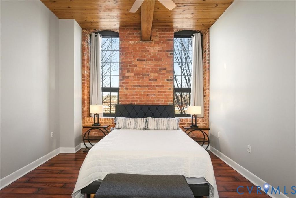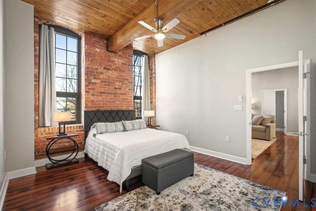 This remarkable, fully furnished condo blends Richmond's historic character with modern upgrades, featuring exposed brick walls and original wooden beams that add timeless charm. Offering two bedrooms and two full bathrooms, the home includes an open kitchen with granite countertops, upgraded cabinetry, hardwood floors, soaring ceilings, and generous closet space. Tile and grout have been professionally refurbished throughout the entry foyer, kitchen, and both bathrooms, creating a fresh, polished look. The kitchen is fully equipped with all appliances, a new double-bowl stainless steel sink, new faucet, and new stove eyes and pans, along with a complete set of dishes, silverware, glassware, stemware, pots, pans, and utensils. Additional updates include a newer HVAC system, fresh paint, washer and dryer with transferable warranty, all new ceiling fans, and updated lighting fixtures throughout the kitchen, dining area, entry foyer, living room, and bedrooms. This truly turn-key residence comes furnished with all new furniture for the living room, dining room, bedroom, entry foyer, and office, as well as artwork, lamps with built-in charging ports, and complete kitchen ware, bedroom, and bathroom linens, including pillows, shower curtains, placemats, and more. Linen-look blackout curtains provide 100% UV protection and energy-saving insulation. The unit includes a deeded garage parking space (#312) and a temperature-controlled private storage unit (#68A) conveniently located near the front door. Located in the vibrant Rocketts Landing community, residents enjoy resort-style amenities including a 24-hour secured fitness center across the street, a riverfront pool, grilling stations, and a play area, all just steps away. Walk to nearby restaurants, local conveniences, and craft breweries, and enjoy an unbeatable riverfront lifestyle in one of Richmond's most desirable communities.