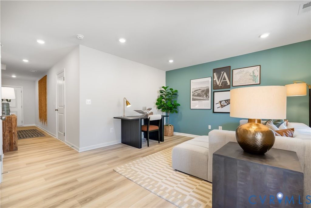 Immediate move in! Brand-new Lancaster townhome with wooded backyard and 1 car garage! Walking distance to elementary school, three bedrooms, two full baths, and 2-half bath. This new three-story townhome boasts a modern and spacious layout. A first-floor rec room makes it easy to entertain and relax throughout the week. On the second level is a flexible open-concept floorplan shared between the kitchen with a large center island with granite countertops, living, and dining areas. Enjoy the warmer weather on the large 10x18 composite deck overlooking the wooded backyard. Three bedrooms make up the third floor, including the luxe owner's suite with a spa-inspired bathroom and walk-in closet. Very short walking distance to Harpers Mill community amenities, including a clubhouse, swimming pool, recreation fields, playgrounds, dog park, walking trail, and elementary school! Images of model home, actual home may differ.
