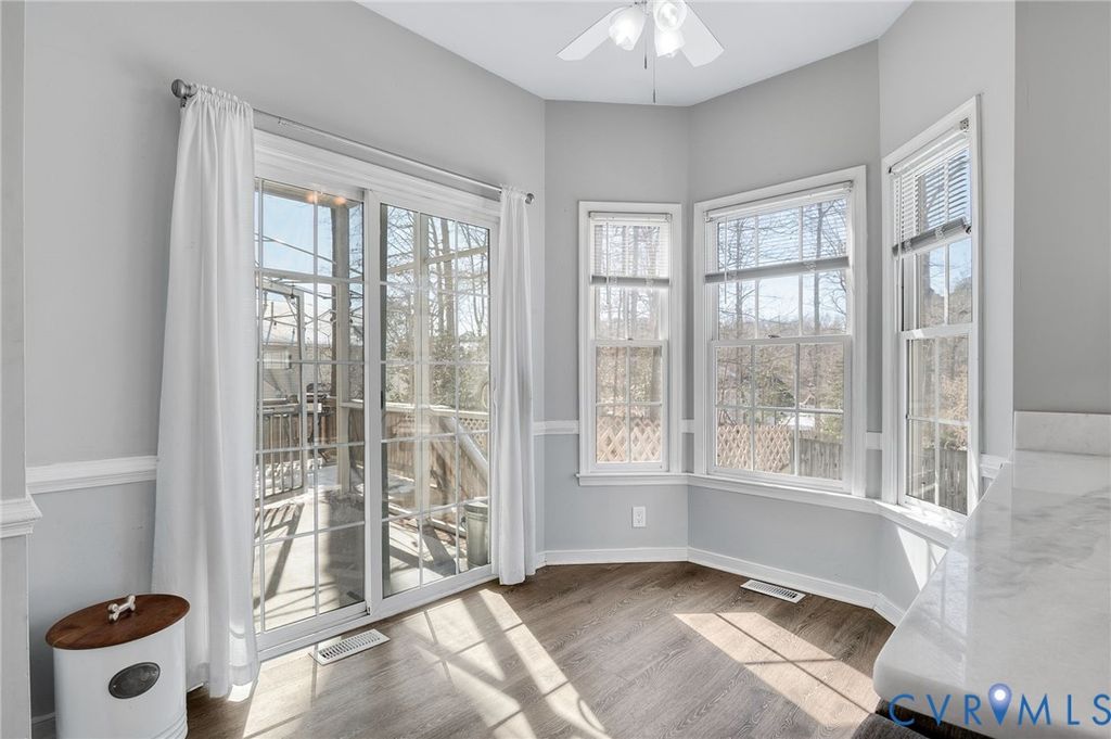 Welcome to 4613 Greywater Dr, located in Greyfield Place in the heart of Chester. This 3 bedroom and 2.5 bathroom home boasts 2,200 square feet of living space along with a first floor primary bedroom, which includes a dedicated full bath and walk in closet. Upon arriving, you will be greeted by a wraparound driveway leading up to the attached 2-car garage. A spacious living room with vaulted ceilings and the gas fireplace gives way to the formal dining room and kitchen. The renovated kitchen features marble countertops, stainless steel appliances, peninsula counter with seating, pantry closet, eat-in space, and the home's laundry closet. The 2 spare bedrooms are located on the 2nd level with a full hall bathroom and a loft space. A sliding glass door from the kitchen leads out to the screened porch, deck, and fenced in backyard. Recent updates & improvements to the home include a new roof (2025), HVAC system (2021), and new appliances (2020). Schedule your tour today to come see what this property has in store for you!