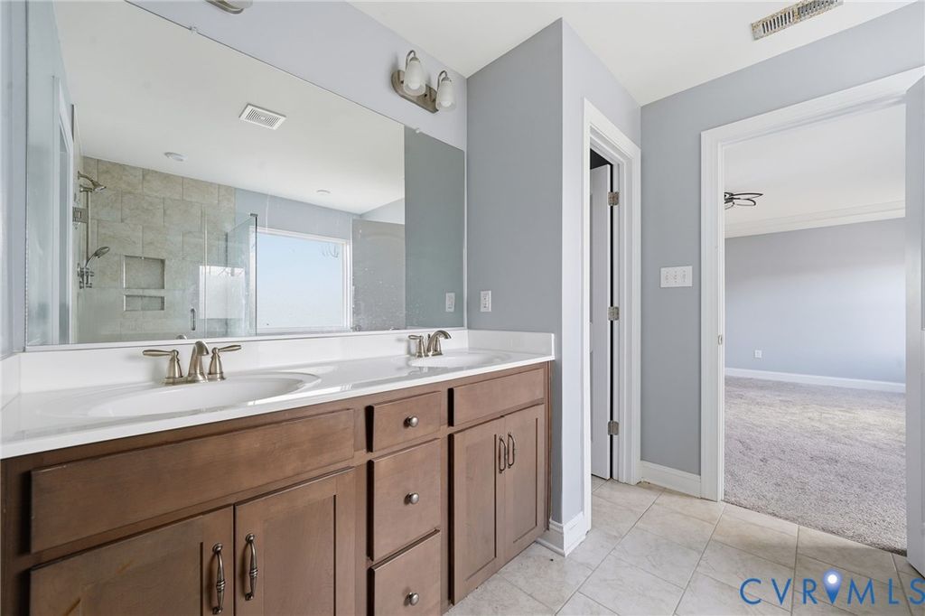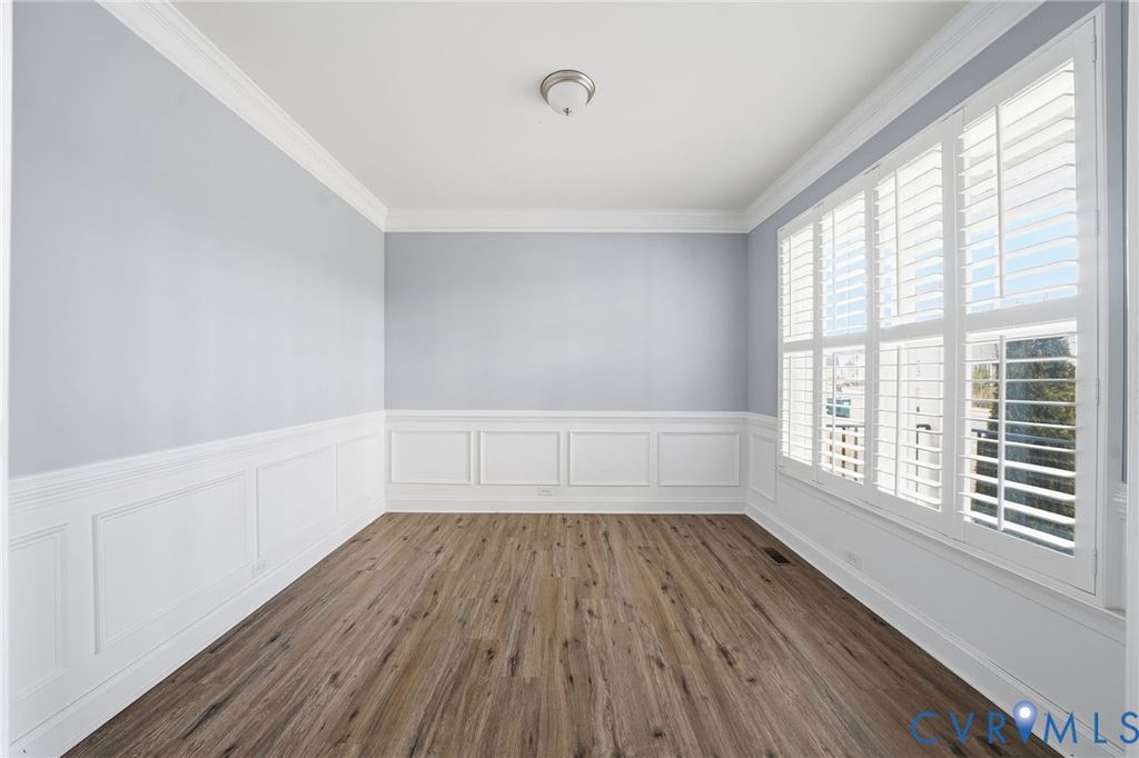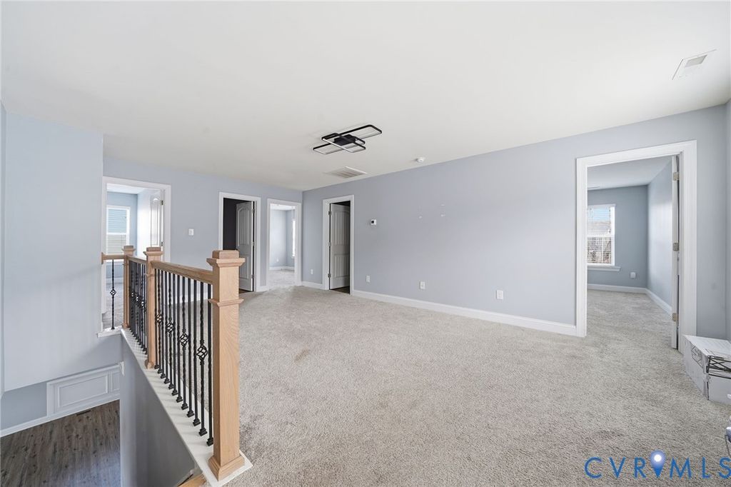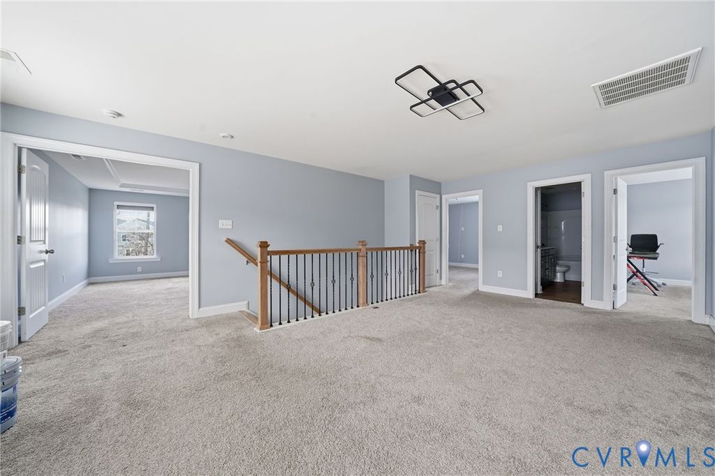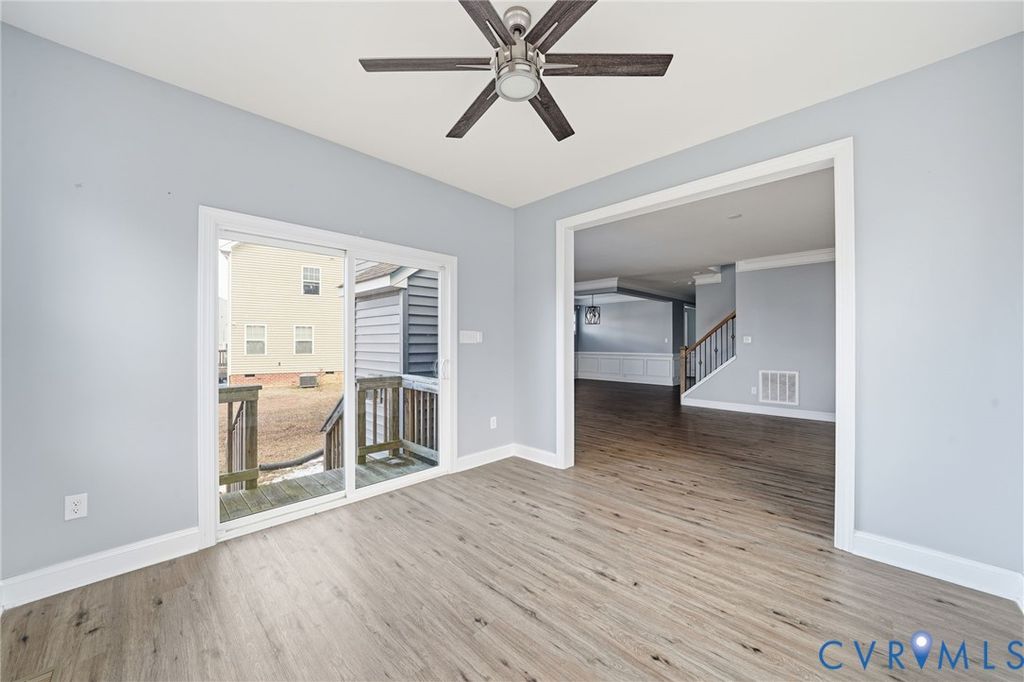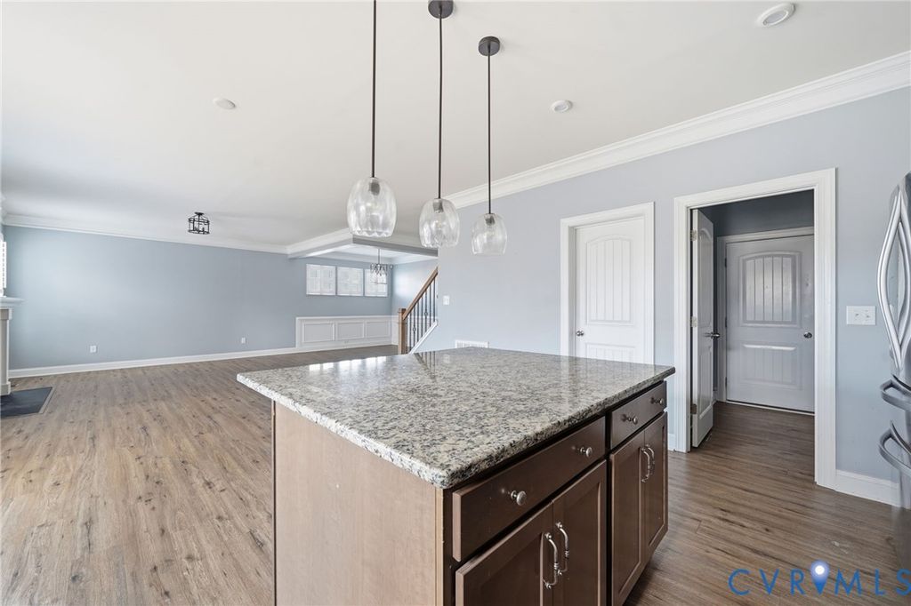 Welcome to this beautifully maintained 4-bedroom, 2.5-bath home in desirable Henrico County offering 2,749 finished square feet of thoughtfully designed living space "” plus a semi-finished two-car garage full of potential. The first floor showcases an open-concept layout where the dining room, kitchen, living room, and sunroom flow seamlessly together, creating the perfect space for everyday living and entertaining. The spacious living area is anchored by a cozy gas fireplace and enhanced by luxury vinyl plank flooring, abundant natural light, and light neutral paint tones throughout. The kitchen is both stylish and functional, featuring light-stained oak cabinetry, a clean white subway tile backsplash, stainless steel appliances (which convey), and a large island with seating illuminated by elegant pendant lighting. Extensive millwork details including chair rail, picture molding, and triple crown molding add timeless character and architectural appeal. Upstairs, a generous loft area connects all four bedrooms, including a true primary suite complete with a private en suite bath. The exterior combines brick veneer and siding for classic curb appeal, highlighted by a concrete and brick front porch and front-loading garage entry. The semi-finished garage offers flexibility for storage, a workshop, home gym, or future finished space. Situated on a large, private lot with no immediate rear neighbor, this property provides a peaceful outdoor setting. Additional features include an electric heat pump and tankless water heater for energy efficiency. This sun-filled, airy home blends comfort, style, and functionality "” ready for its next owner to make it their own.