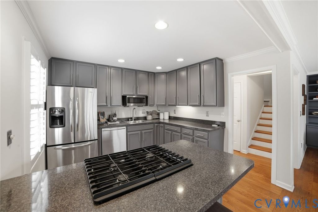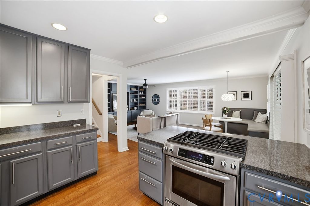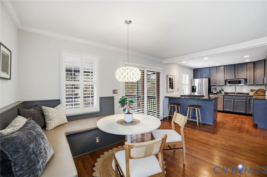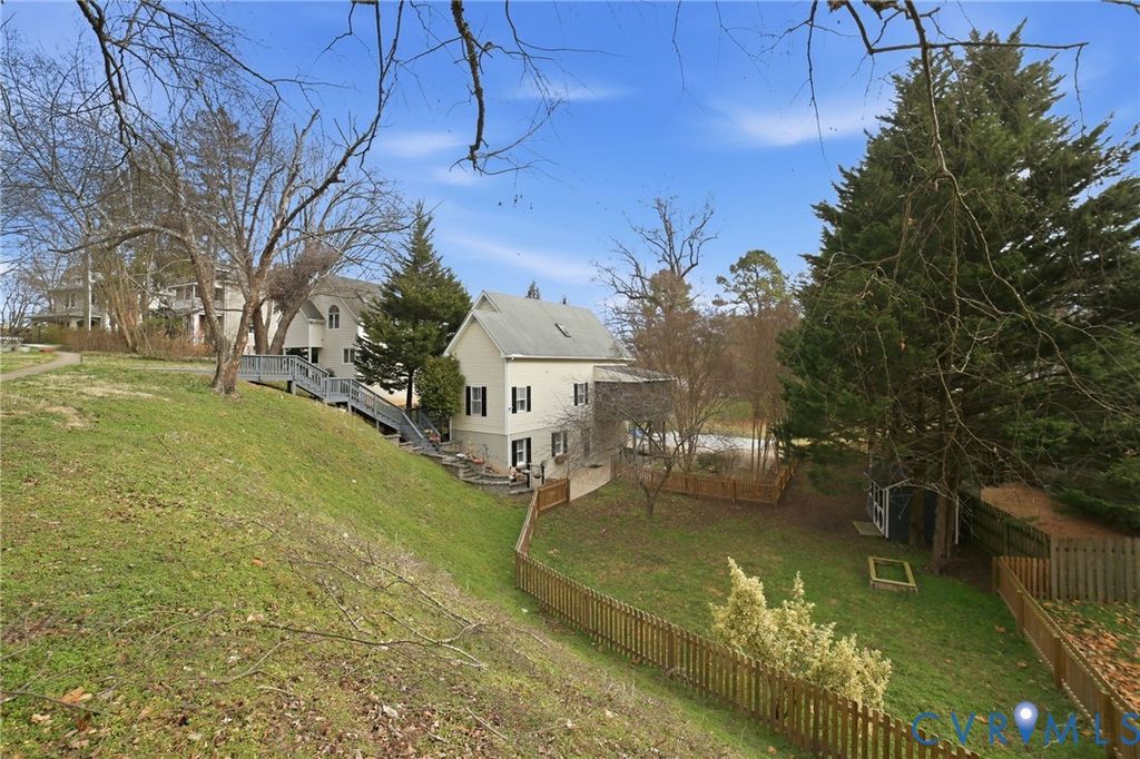 Blending contemporary design with thoughtful functionality, this Woodland Heights gem offers space, style, and versatility in one of Richmond's most desirable South of the James locations. Perched on an elevated lot, the home features a welcoming exterior with mature trees, a private feel and sweeping views of the surrounding neighborhood. Inside, warm hardwood floors flow throughout the main living areas, complemented by abundant natural light and clean, modern finishes. This home offers more than 2,500 square feet of beautifully designed living space with 3 bedrooms and 3 full baths. A full basement expands the home's possibilities with an additional kitchen, living area, and bedroom space"”ideal for a home office, extended stays, private guest quarters, or flexible bonus space. The kitchen is thoughtfully updated with stainless steel appliances, gas cooking, expansive granite countertops, and generous cabinetry"”perfect for everyday living and entertaining alike. Just beyond, the living room is a true focal point, showcasing stunning wall-to-wall custom built-in cabinetry ideal for displaying books, art, and personal collections. A versatile first-level bedroom and full bath provide flexibility for guests, a home office, or multi-generational living. Upstairs, the bedrooms feature vaulted ceilings and skylights that fill the spaces with natural light, creating an airy and inviting retreat. This home has a premier location just steps from the James River Park system and popular biking trails along Riverside Drive. SPECIAL FEATURES: NEW HVAC (2025), ELECTRIC VEHICLE CHARGING STATION (2023), FENCING (2022), STONE PATIO (2022), SHEDS (2022), TANKLESS HOT WATER HEATER (2019).