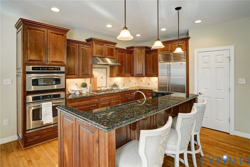 Tucked within the Coach Homes enclave of Kinloch, 504 Hunt Field Road presents a rare opportunity for refined, low maintenance living without compromise. This all-brick, one-owner residence blends timeless craftsmanship with thoughtfully designed spaces, offering over 6,000 finished square feet across three levels"”each curated for comfort, privacy, and effortless entertaining. From the moment you enter, the home's warm elegance is evident. Expansive, light-filled interiors flow seamlessly from one room to the next, anchored by a dramatic two-story family room with a striking stacked-stone fireplace. The chef's kitchen is both functional and beautiful, featuring a generous island, gas range, Sub-Zero refrigeration, walk-in pantry, and a sunlit breakfast area"”perfect for both quiet mornings and lively gatherings. The main-level primary suite is a true retreat, distinguished by a gracious bay window sitting area, dual walk-in closets, and the rare luxury of two private baths. Upstairs, three well-appointed bedrooms, two full baths, and a versatile loft provide an ideal haven for guests, offering both comfort and separation. Designed with entertaining in mind, the walk-out lower level extends the home's living space with a welcoming recreation room, fireplace, expansive wet bar, and a conditioned wine cellar. A private guest suite on this level ensures visitors enjoy both luxury and independence. Outdoors, the home is equally compelling. Two thoughtfully designed patio spaces"”one adjoining the main level and another serving the lower level"”create a seamless indoor-outdoor lifestyle. A covered terrace and curved raised patio invite quiet evenings surrounded by natural privacy and wooded views. Additional features include a three-car garage, whole-house generator, abundant storage with room for hobbies or workshop space, and elegant landscape lighting. With community-maintained grounds and irrigation, this property offers a truly lock-and-leave lifestyle, allowing you to enjoy the best of Kinloch with ease.