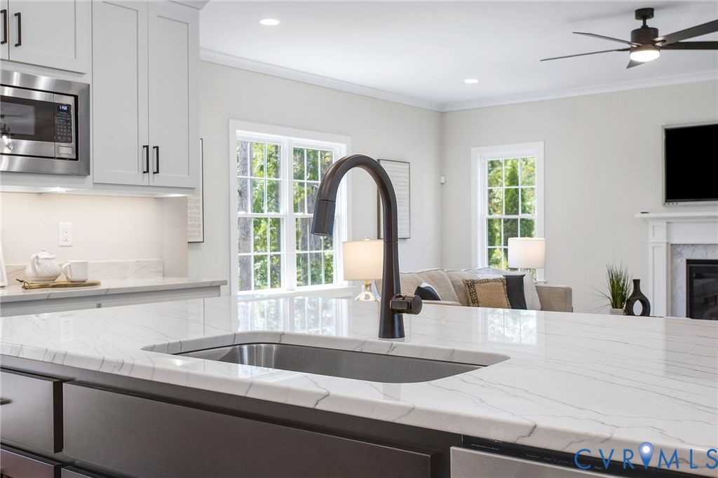 Welcome home to the Kara plan by Huguenot Builders Inc. Warm and inviting this plan offers easy living in the highly sought after Tarrington by the James subdivision. The open first floor features a formal dining room, chef's kitchen with gas stove, dishwasher in island, microwave and Quartzite countertops. Kitchen is open to the dining room and great room with gas fireplace, engineered hardwood floors, and ceiling fan. The office is tucked away just beyond the walk-in pantry, half bath and drop zone. Upstairs the primary bedroom is truly a retreat with two large walk-in closets, double bowl vanity, and private water closet. The guest bedroom has an en suite bath and walk-in closet. Two additional bedrooms are joined with a Jack & Jill bath and feature walk-in closets. The laundry room has an abundance of cabinets, stylish tile floors and a laundry sink. Rear deck and garage complete this home. Gas backed heat pump on first floor will keep you warm and cozy in the winter. Rinnai tankless hot water heater is cost effective. Tarrington boasts a club house and pool and sidewalks throughout the community. Walk or park at the end of Seaford Crossing Drive and walk to the James River. Kayak storage available. Conveniently located near shopping, restaurants, entertainment and major thoroughfares.