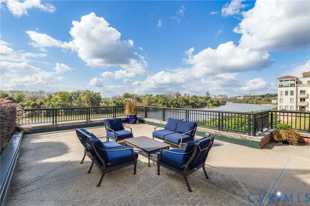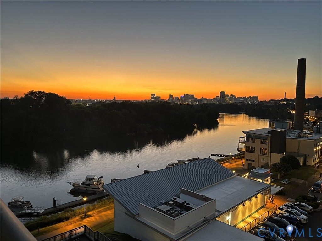 You will be stunned by the beauty surrounding you, this is one of the most impressive properties in ROCKETTS. From the open living, dining, and kitchen spaces to the glass beyond, where the James River stretches wide and the downtown Richmond skyline rises in the distance. The open-concept design allows the view to unfold from multiple rooms, creating a sense of light, openness, & connection throughout the home. From the living area, dining space, kitchen, and both bedrooms including the primary suite the view is expansive & uninterrupted, offering a daily sense of serenity that's rare to find. The residence has been COMPLETELY and thoughtfully renovated, presenting in pristine, move-in-ready condition. Highlights include a NEW designer kitchen with new; cabinetry, quartz countertops, tile backsplash, Café appliance suite with upgraded hardware, custom range hood, microwave drawer, and workstation sink; fully renovated primary and guest baths with quartz countertops, new tile, and premium fixtures; new flooring throughout, fresh paint on ceilings, walls, and trim; and a curated lighting plan featuring recessed lighting and designer chandelier. Additional upgrades include custom closet systems, retractable balcony screen door, Schlage keyless entry, and a new gas furnace installed November 2025 with smart thermostat and water sensor. Enjoy a refreshing beverage on the balcony or on the large common terraces on each side of the building, while gazing upon the enchanting scenes along the James River, where the lively river festivities blend seamlessly w/ breathtaking beauty & vibrant wildlife. Richmond's premier Waterfront Community provides exclusive access to an array of amenities just outside your door. Enjoy the 24-hr gym, two pools, picnic area, Full-service marina, volleyball, waterfront restaurants, & the Virginia Capital Trail, all along the scenic James River. Enjoy the convenience of 2 covered gated parking spaces! Come join this charming community! Professional photos soon