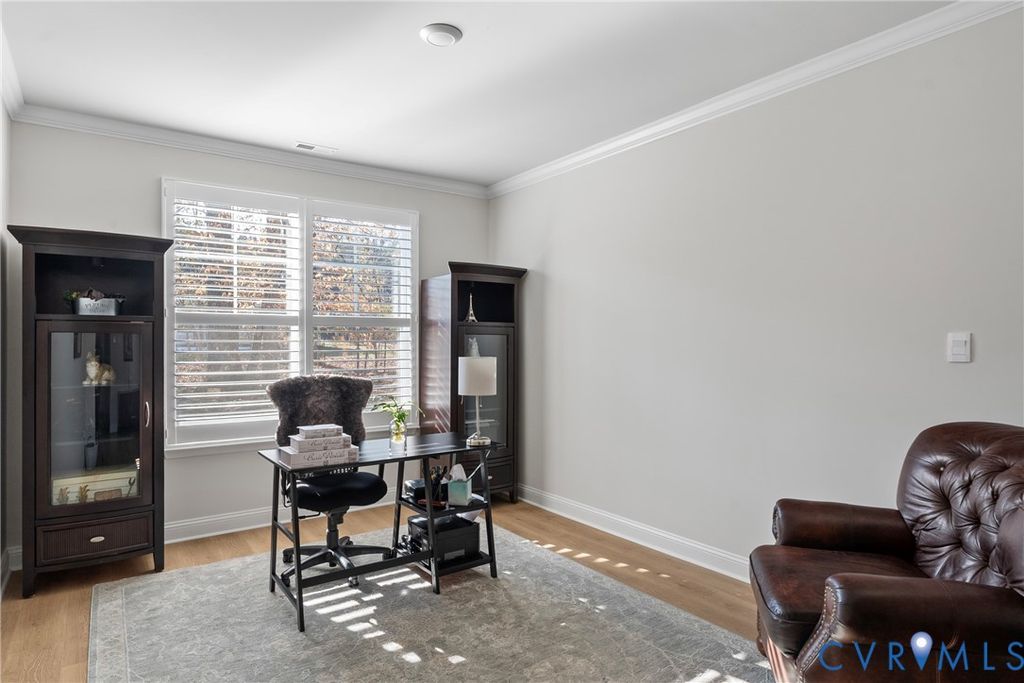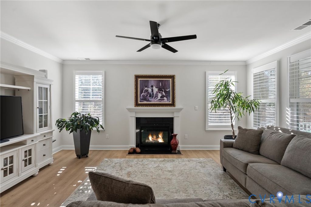 Welcome to this pristine and beautifully maintained home in the highly desirable Lake Margaret neighborhood. Designed for comfortable one-level living, this residence offers a thoughtful floorplan, abundant natural light, and elegant finishes throughout, making it easy to feel right at home from the moment you arrive. At the heart of the home is the stunning chef's kitchen, complete with a large center island, gas cooktop, stainless steel appliances, two pantries, and a spacious eat-in area perfect for casual dining. The kitchen opens seamlessly to the main living area, where a cozy gas fireplace creates an inviting setting for everyday living and entertaining. The spacious primary suite is a true retreat, featuring a luxurious spa-like bath and an enormous walk-in closet. Two additional bedrooms provide flexibility for guests or family"”one with a private ensuite bath, and the other conveniently located near a full hall bath. A versatile flex space or dedicated office area offers endless possibilities for working from home, hobbies, or additional living space. Plantation shutters throughout the home enhance both style and privacy. Additional thoughtful details include a door with privacy window film, allowing abundant natural light while maintaining privacy. Step outside to the screened-in porch, the perfect spot for sipping your morning latte or relaxing in the evening, while enjoying the fenced rear yard. An epoxy-finished two-car garage adds both function and a polished touch. Lake Margaret, at The Highlands, is a charming neighborhood set within the beautiful golf course community of The Highlands in Chesterfield, Virginia. Residents enjoy access to a championship 18-hole golf course, three lakefront pools with a clubhouse, tennis courts, scenic walking trails, a playground, and two lakes totaling over 100 acres"”ideal for fishing and canoeing. Conveniently located between Richmond and Petersburg, the community offers easy access to dining, shopping, medical facilities, and entertainment just minutes away.