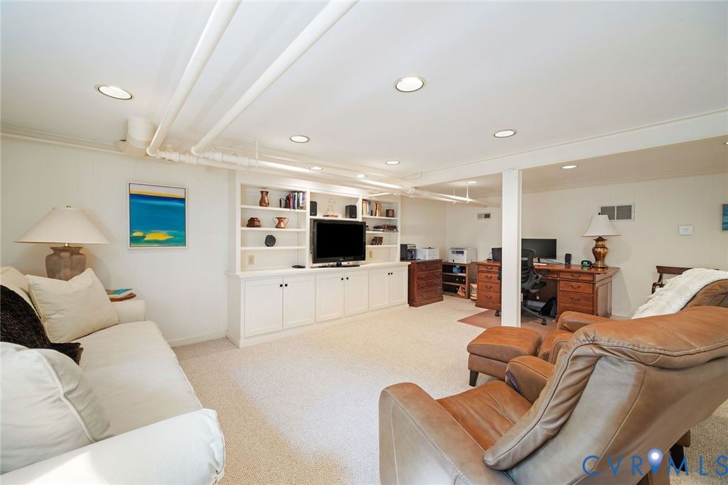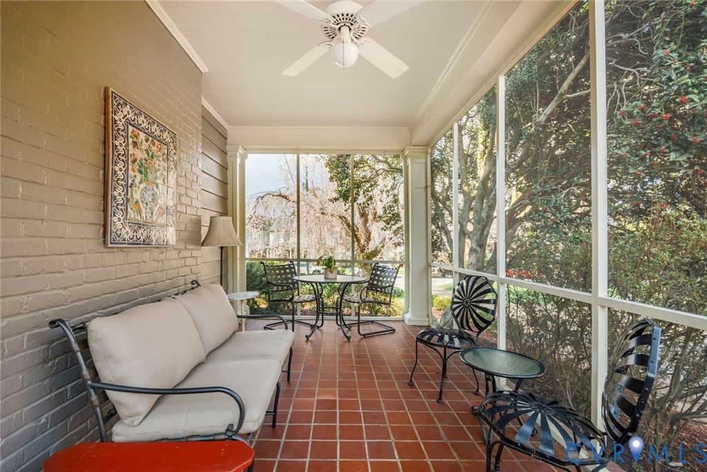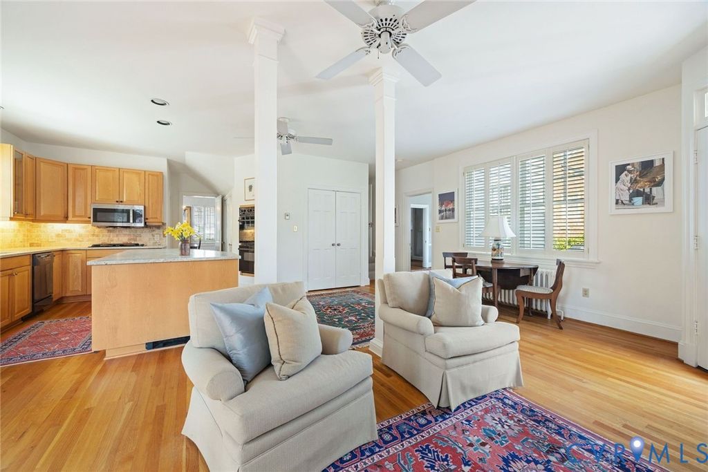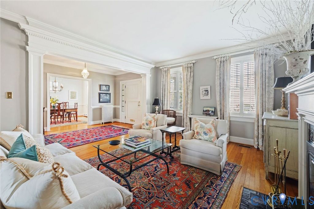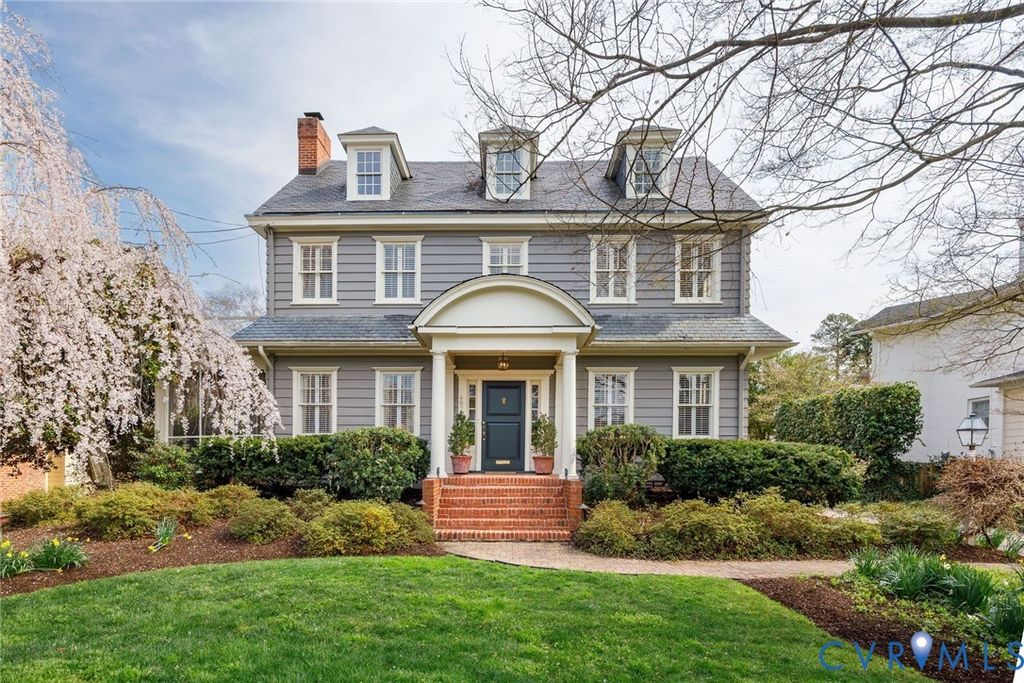 Dating back to 1922 and one of the original houses in the neighborhood, this 4,111-square foot historic gem is being offered for the first time in 42 years. From the striking front porch with unique arched slate roof, an oversized front door with sidelights introduces you to a grand-scale entrance hall with 9' ceilings, beautiful hardwood floors, distinctive moldings, and wide openings to elegant formal rooms. The expanded kitchen/family room features granite countertops, travertine backsplash, a breakfast area and gas fireplace flanked by built-ins and French doors. A cozy den and powder room complete the 1st floor. On the 2nd level, there are 4 bedrooms and 3 full baths, including a sun-washed primary suite with fireplace, walk-in closet and renovated bath. A wraparound hallway provides a convenient laundry, a large cedar closet, a second staircase to the 1st floor and stairs to the 4th floor. The upper level offers fabulous flex options for an art studio, office, playroom or 5th bedroom. In the expansive basement, a carpeted rec room has built-ins and a wet bar and is adjacent to storage/workshop/utility rooms. The exterior features a charming screened porch, Trex deck, garden house and stone-paver driveway. Nicely positioned above street level, this enchanting property is lushly-landscaped with a magnificent weeping cherry in the front and specimen plants in the rear gardens. Wonderful location near schools and Libbie/Grove shops and restaurants!