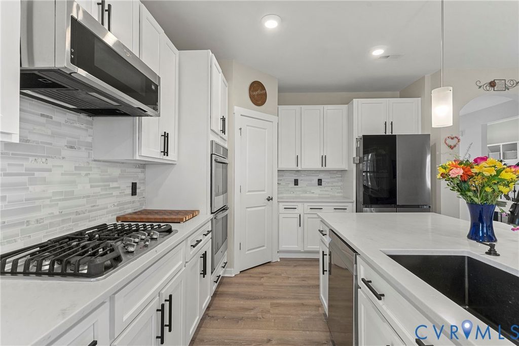 Welcome to 8612 Level Gauge Lane, featuring the popular Madison floorplan by StyleCraft, known for its flexible layout and thoughtful use of space. This well-designed home offers both open-concept living and versatile rooms that adapt easily to today's lifestyles. The main level showcases new luxury vinyl plank (LVP) flooring throughout and brand-new kitchen countertops, creating a fresh, modern feel. The kitchen anchors the living space with ample cabinetry, generous Upgraded Quartz counter space, and seamless flow into the dining and family room"”ideal for everyday living and entertaining. A first-floor spare bedroom provides valuable flexibility and can serve as a guest room, second home office, or hobby space. Upstairs, new luxury vinyl plank (LVP) flooring continues on the second level, which has a spacious loft common area, perfect for a media room, play area, or additional living space. The remaining bedrooms are generously sized, and each bedroom is equipped with custom closet organizers, offering exceptional storage throughout the home. The convenience of second-floor laundry keeps daily routines efficient and organized. Outside, enjoy a private backyard setting ideal for relaxing evenings or weekend gatherings, out on your Patio or inside the covered screen deck. Located in desirable Chesterfield County with easy access to shopping, dining, and major commuter routes, 8612 Level Gauge Lane delivers the flexibility and functionality the Madison floorplan is known for"”paired with tasteful updates and move-in-ready condition.