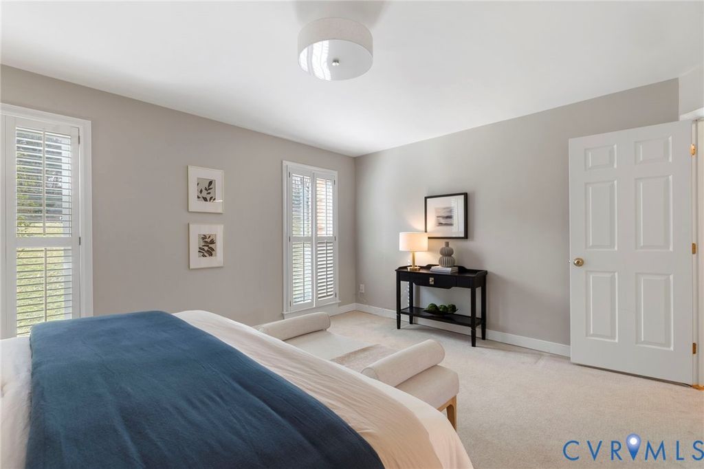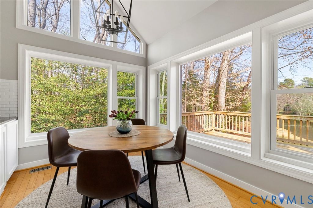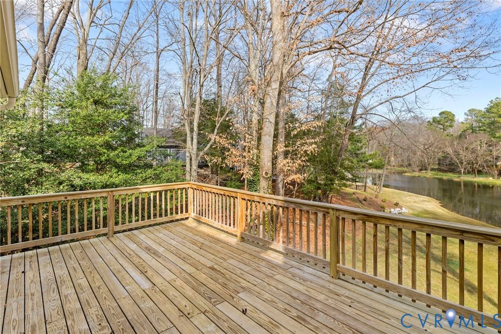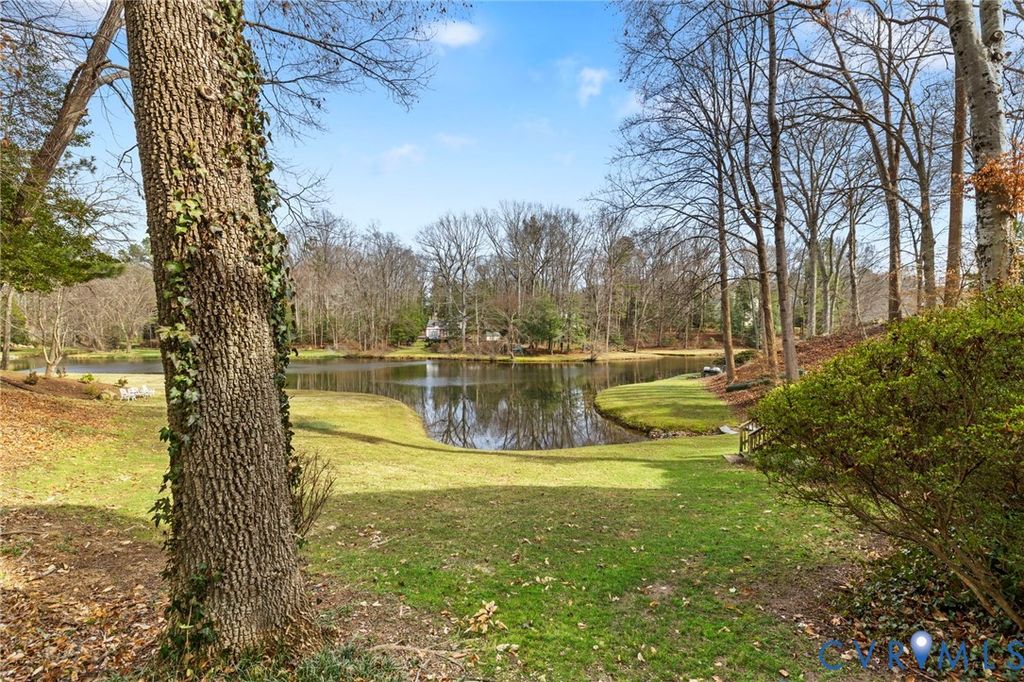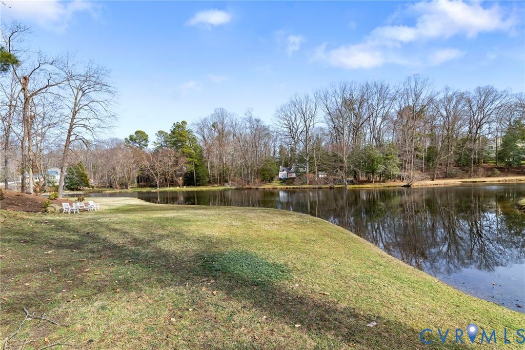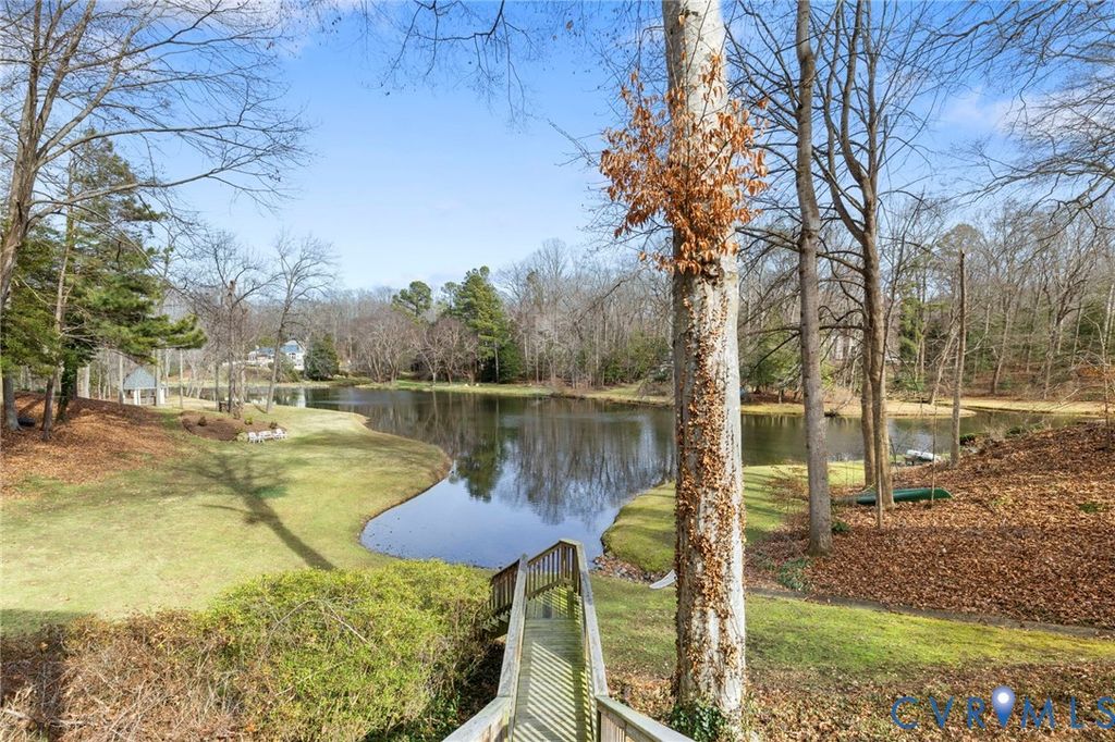 WATERFRONT tranquility in Bexley West. Egrets, geese and ducks galore. Welcome to 2807 St. Regis Drive. This graceful, brick transitional home, distinguished by its signature semi-circular window arches, offers a front-row seat to the serene Lower Beaver Pond. Designed to invite the outdoors in, the home features sweeping water vistas from the gourmet kitchen, eat-in area, family room and the primary ensuite. The interior flow is seamless, creating a space with plenty of room for entertaining while enjoying breathtaking views of the water. The front living room could be used as a home office or library. The main-level primary ensuite serves as a private sanctuary, complete with a double vanity, walk-in closet, and a soaking tub with a water view. Upstairs, you will find 3 bedrooms and a full bath with a double vanity and plenty of storage. There is a finished rec room basement area, fully carpeted with a gas FP and full bath, perfect for guests and/or a dedicated kids' space. A full size 2 car garage provides ample storage space for cars and all other needs. Outdoors boasts a spacious rear deck and private screened-in porch"”the perfect spot for morning coffee or sunset dinners while watching the mist over the pond. Mature plantings and professional landscaping create a lush, park-like feel that offers year-round enjoyment. Whether you are hosting summer parties or enjoying a quiet evening by the water, this home offers a rare blend of elegance and tranquility. Conveniently located within minutes of restaurants, Trader Joe's, Stony Point mall, Providence golf course, and Wegman's. Easy access to downtown RVA and highways.