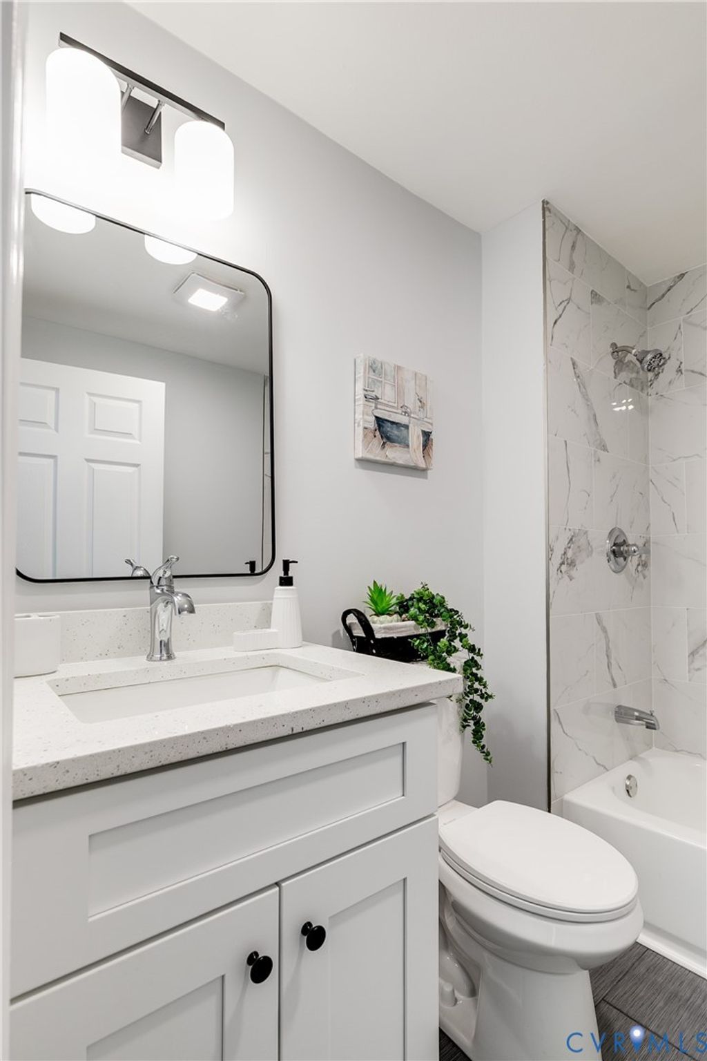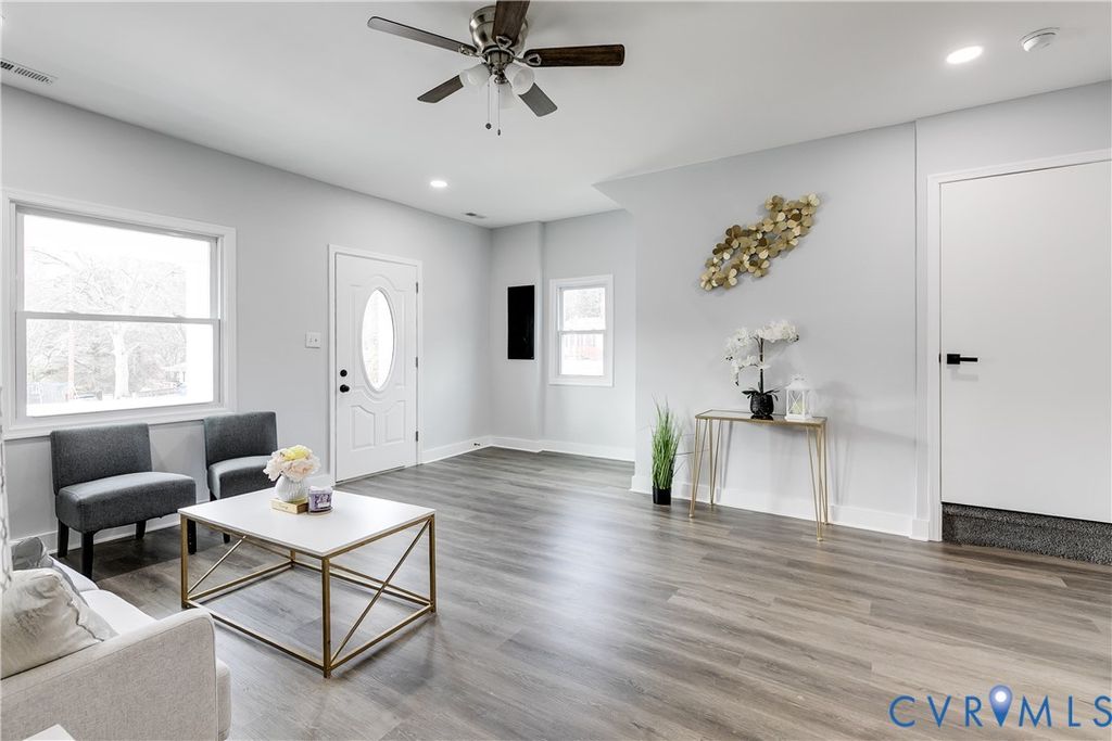 Welcome to this beautifully renovated and thoughtfully extended home situated on a generous corner lot! As you step inside you are greeted by a bright and inviting open-concept living room featuring stylish vinyl plank flooring that flows seamlessly throughout the main living areas. The open layout effortlessly guides you into the spacious kitchen, where you'll love the elegant white cabinetry, sleek quartz countertops, and a full suite of stainless steel appliances perfect for both everyday living and entertaining. The home offers 3 comfortable bedrooms and 2 full bathrooms: The private primary suite features its own bathroom with an elegant tiled and glass walk-in shower and a spacious walk-in closet. A second bedroom is conveniently located downstairs, ideal for guests, a home office, or family. The third bedroom upstairs offers cozy carpeting for added warmth and comfort a perfect private space. Step outside to enjoy the fenced backyard, offering privacy and plenty of room for gatherings, pets, or outdoor enjoyment all on a generously sized corner lot. Situated in the highly desirable Chesterfield County school district, just minutes from Virginia State University, conveniently close to shopping and dining at Colonial Heights, and easy access to I-95 for commuters. This beautifully updated home combines style, comfort, and convenience, a true must-see! Schedule your private tour today and make this beautiful property yours.