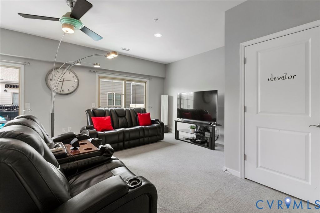 Rare Opportunity in the Heart of Short Pump! Don't miss this spacious townhome located in the highly desirable West Broad Village Community. Offering maintenance-free living, this home is just steps from everything"”Whole Foods, HomeGoods, dining, groceries, and the stunning clubhouse featuring a pool, fitness center, theater room, and more!. PROPERTY HIGHLIGHTS-4 Bedrooms / 4 Full Bathrooms + 1 Half Bathroom/Attached 2Car Garage/ Elevator Access to ALL levels. First Level: Perfect for Guests or Home Office, Full Bath, Large Storage Closet, Direct Entry Garage. Second Level: Open Concept Living & Entertaining: Gourmet Kitchen with gas cooking, granite countertops, breakfast bar, stainless steel appliances and custom pantry, gas fireplace in the eat in family room for cozy ambiance, private balcony with direct gas line hookup for grilling. Formal dining and living rooms with hardwood floors and convenient half bath. Third Level: Luxurious Primary Suite spacious primary bedroom with private balcony, and walk-in closet, and large ensuite tiled bathroom. Additional bedroom, also with ensuite bath and walk-in closet. Convenient laundry room on this level. Fourth Level:Ultimate Flex Space: Large Bedroom with Full bathroom, Expansive recreation/MEDIA room. Additional Large Storage Closet. Walk out to a HUGE PRIVATE rooftop patio, perfect for entertaining or relaxing. ADDITIONAL FEATURES: Sited directly across the street from the community pool, elevator access on all 4 levels for total convenience, EV charger in garage, tankless water heater, under-cabinet lighting in kitchen, Attached Two Car Garage/Beautiful walking paths, playground, ponds, and AMENITIES GALORE! HURRY ON THIS ONE!! Built in Surround Sound and Recessed Lighting. This one is a MUST SEE!
