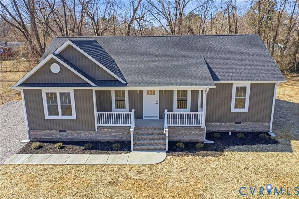 Welcome to this beautifully crafted new construction home offering 1,520 square feet of thoughtfully designed living space. This 3-bedroom, 2-bath home features a desirable open-concept layout with a split-bedroom design, placing the private primary suite on one side and the additional bedrooms on the other. The spacious living room showcases a tray ceiling and flows seamlessly into the open dining area and stunning kitchen complete with white cabinetry, stainless steel appliances, a large island, black finishes, and abundant natural light. Durable LVP flooring runs throughout the home, complemented by neutral interior paint for a modern, inviting feel. The primary suite offers a private en-suite bath with double vanity and an oversized walk-in closet. The secondary bedrooms are generously sized, and the utility/laundry room is impressively large with built-in storage for added convenience. Enjoy outdoor living with both a covered front porch and an expansive covered back deck"”perfect for relaxing or entertaining. The home also features a gravel driveway and a concrete sidewalk leading to the front entrance. Conveniently located near Lake Chesdin and the Dinwiddie public boat landing, this home offers peaceful living with easy access to recreation.