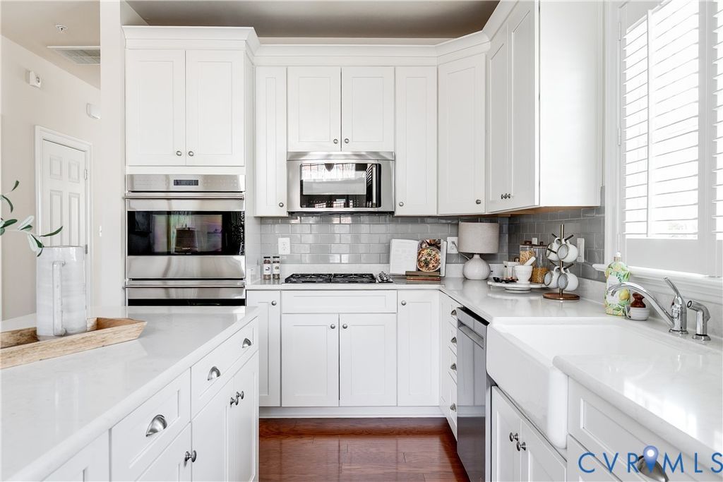 Nestled in the heart of Grayson Hill, this elegant townhome, which was originally a Banbury model home, embodies the perfect blend of modern convenience and classic charm. As you approach this pristine END UNIT, a charming courtyard welcomes you. Upon entering, you are greeted by an airy living room with hardwood floors that seamlessly flow into the dining area, creating a harmonious space perfect for both intimate gatherings and lively entertaining. The upgraded kitchen is a culinary dream, featuring custom cabinets, top-of-the-line stainless steel appliances, including a Sub-Zero fridge, a Wolf Gas cooktop, Wolf double-wall ovens, and stunning Quartz countertops. The generous center island is ideal for casual meals, while the adjoining morning room invites you to enjoy your coffee, with French doors leading to a private brick patio with a fenced-in backyard. The first-floor primary suite is a true sanctuary featuring a spa-like bath complete with a luxurious soaking tub, separate shower, and a spacious walk-in closet. With the convenience of a first-floor laundry, this home offers the ease of one-floor living. Venture upstairs to discover a soaring vaulted family room, complete with a cozy gas fireplace. An inviting office /game area provides the perfect spot for productivity and family fun. The second primary suite on the second floor features a large bathroom with access to a private porch as well as a large walk-in closet. An additional large bedroom upstairs offers ample space for family/guests. The attached two-car garage offers convenient parking. New carpet, new HVAC on the second floor, fresh paint, a full-sized Samsung stacked washer and dryer, and elegant plantation shutters throughout, this home is truly move-in ready. Residents can indulge in the delightful amenities, including a spectacular pool, a welcoming clubhouse for entertaining, a well-equipped fitness center, and a meeting room with a community kitchen. This townhome is not just a residence; it's a lifestyle waiting to be embraced.