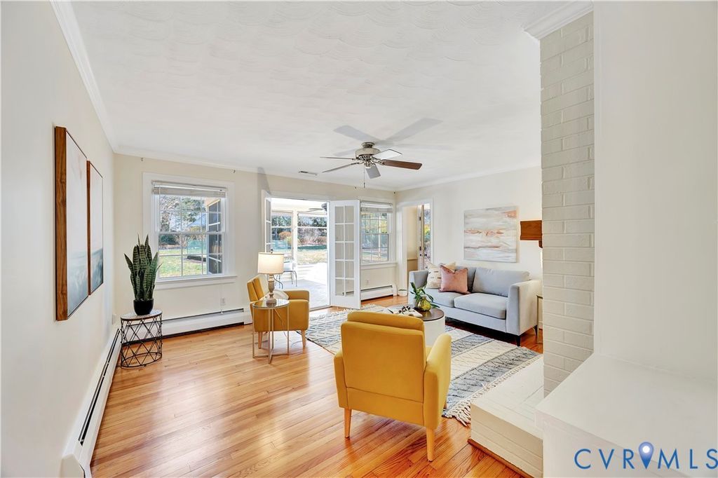 This sophisticated brick rancher in Oxford has just as pretty an interior as its amazing exterior curb appeal. Seventeen years of owner improvements and remodeling inside and out are awaiting you. The obvious attention to the gorgeous yards, flower beds, vegetable garden, stone patio and newer hot tub will keep you yearning to head outdoors. Everyone loves a nice, screened porch and this oversized rear porch is perfect to host your family warm weather meals, and your summer chill times. And WOW! There's so much to enjoy inside, too, like pretty hardwood floors and bright energy efficient windows. A favorite feature of the home is the elegant and generous living room with a newer picture window, wood floors, white brick fireplace, formal crown molding, and generous space for gatherings. The remodeled eat-in kitchen has all the modern features including dazzling granite counters. Take your meals in the formal dining room or in the sweet casual rear family room with gas fireplace. The three generous bedrooms are off the "private" side hall and set apart from the living areas. The primary bedroom with en-suite ceramic bath and step-in shower is fresh as a daisy. There's an updated hall bath that serves bedrooms 2 and 3. The fresh paint throughout most of home is icing on top of years of TLC. Good pantry and storage closets. Here's a BONUS: There's a one car side entry attached garage, workshop, and equipment room in the basement. It's convenient to James River Park's Flat Water canoe landing, wooded trails, and Pony Pasture...plus shopping and restaurants in all directions. It's a sweet spot in a sweet location.