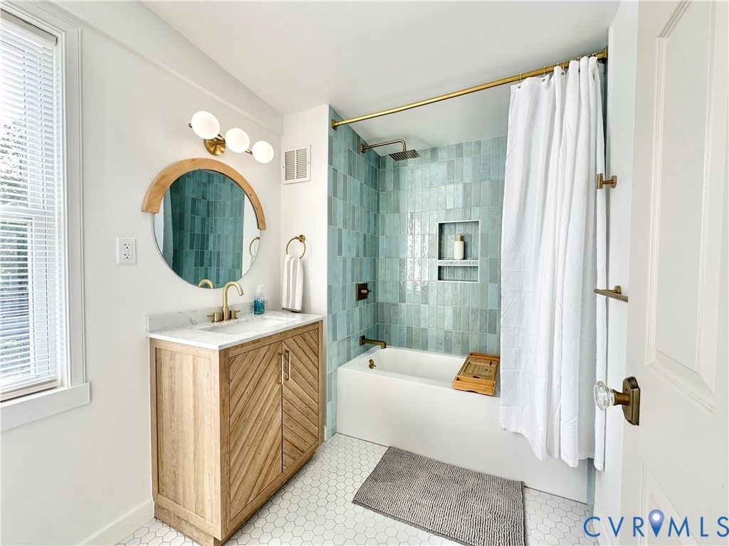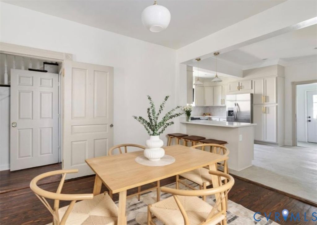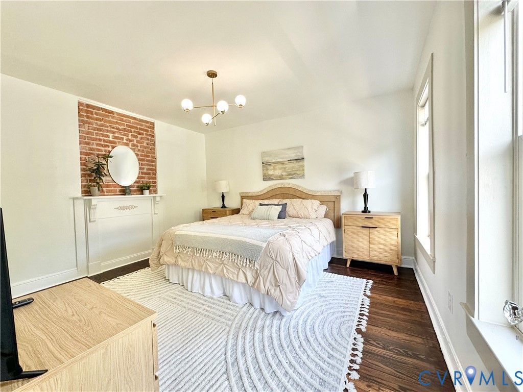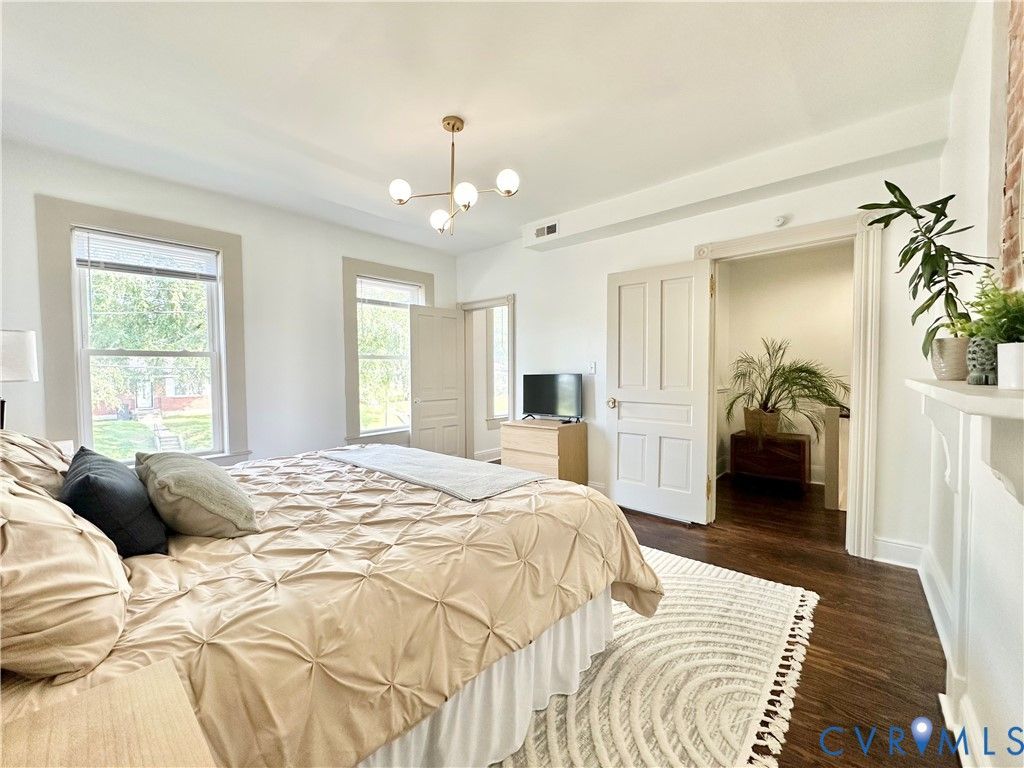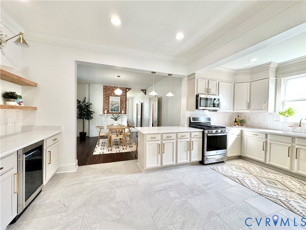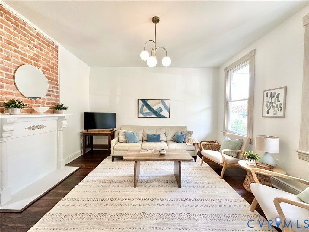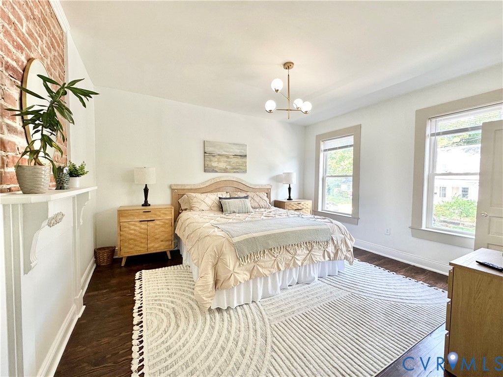 Welcome to 1500 N. 23rd St! This stunning circa 1909 three-bedroom two-bath home is situated on a spacious and sunny corner lot in one of Richmond's most beloved historic neighborhoods. From the moment you step inside the entryway, you'll be captivated by the striking wood herringbone ceiling, intricate millwork, original hardwood floors and designer lighting-and you'll realize this renovation is anything but ordinary! Meticulous care was taken to preserve the unique historic architectural details, while modernizing each space with carefully curated fixtures, stylish lighting and thoughtful upgrades with the intention of creating an elegant and tranquil vibe in every room. The expansive magazine-worthy kitchen is a chef's dream! It features plentiful tall cabinets capped with gorgeous custom crown molding, quartz countertops and breakfast bar, glazed tile backsplash and a designated beverage station with wine refrigerator and maple open shelving. Stainless steel appliances and dual-fuel range/oven. On the main level, enjoy the gracious and lovely dining and living rooms with decorative exposed brick fireplaces, original mantels, a gorgeous spa-like full bath with walk-in shower, glazed tile and dual frameless glass doors plus a laundry room. Upstairs, the spacious primary bedroom boasts over-sized windows, exposed brick fireplace and a walk-in closet. Two additional large bedrooms are ideal for guests, home office or growing families. The upstairs bath is a show-stopper, featuring a herringbone vanity, extra-deep soaking tub and gorgeous ceramic tile throughout. Relax on the charming front porch or retreat to the freshly landscaped rear yard with privacy fence and a large storage shed with electricity. There are so many upgrades, including a new roofs, electrical panel, AC unit and refreshed porches. Enjoy easy access to interstates and Richmond, and walk to some of the very best restaurants & shops in Church Hill. This home is a MUST SEE in person! Don't miss this historic and special home-schedule a tour today!
