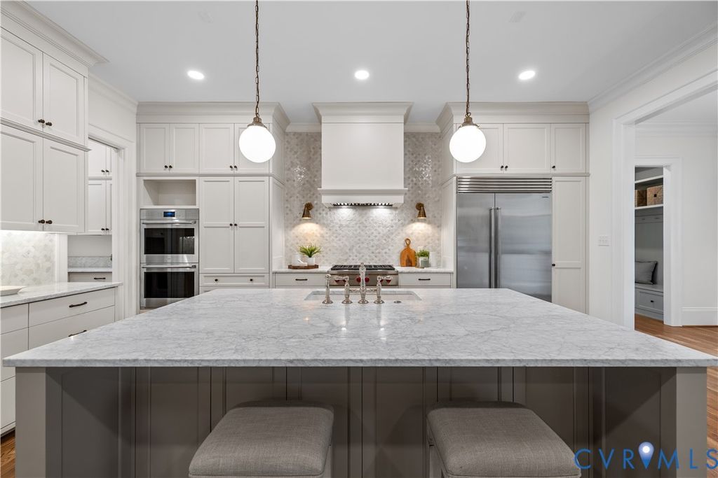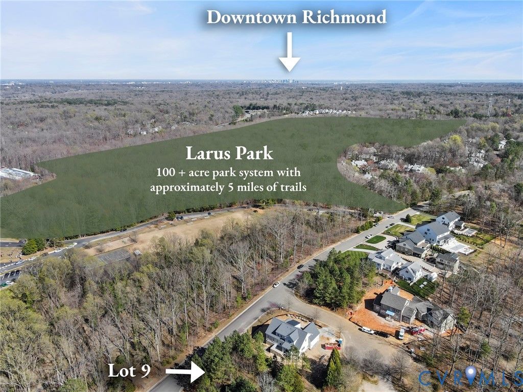 Luxury NEW Construction in the secluded boutique enclave of Stony Point Green-an intimate 14-homesite community carved from former estate grounds and buffered by more than 100 acres of Larus Park. Nearly five miles of wooded trails begin just steps from your door, linking all the way to the James River Park System. Morning runs, mountain biking, dog walks, and sunset hikes become part of everyday life in this true outdoor enthusiast's playground. Tucked quietly off Stony Point Road, this neighborhood offers a rare "town and country" lifestyle with exceptional convenience. Historic Bon Air is just minutes away, blending small-town charm with modern amenities. A nearby Trader Joe's anchored shopping center features boutique retail, a specialty food market, and beloved local restaurants. With easy access to Huguenot Road and Chippenham Parkway, commuting to the West End, or Downtown is seamless - keeping you connected while preserving a sense of retreat. Inside, 4,281 SF of thoughtfully curated luxury is designed for predominantly one-level living. The first-floor primary suite offers heated bath floors and a zero-entry steam shower for a spa-like experience at home. An additional main-level bedroom with private bath provides ideal flexibility for guests or multigenerational living. Ten-foot ceilings, extensive millwork, custom cabinetry, and multiple built-ins enhance every space. The chef's kitchen features a Wolf and Sub-Zero appliance package, oversized island, and separate prep kitchen, opening to gracious living areas with a fireplace and architectural detail throughout. Upstairs, spacious secondary bedrooms with private bath access provide comfort and privacy for family and guests. Generous bonus space allows for a home fitness studio, media lounge, or hobby rooms, ensuring flexibility to suit your lifestyle. Outdoor living is exceptional, highlighted by a covered bluestone rear porch with outdoor kitchen and wood-burning masonry fireplace"”perfect for three-season entertaining or quiet evenings at home.