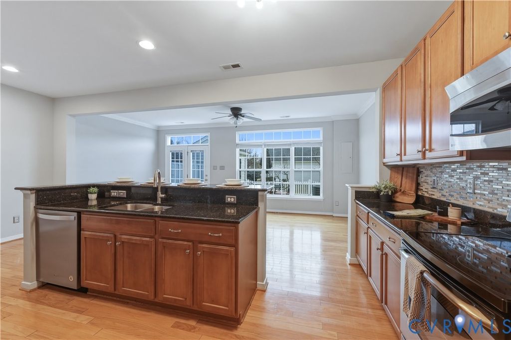 This is a must see beautiful Townhouse in such a sought after, Henrico neighborhood! It host three Bedrooms, two full and one half baths. The gorgeous, primary bedroom has walk in closet and its own private En-Suite with soaker, garden tub. If you like to entertain then you will enjoy the kitchen/family room open concept floor plan with a huge island and all its ample lighting from tons of windows. You will not be disappointed with the beautiful Granite countertops and stainless appliances too. Only minutes to fine dinning, shopping, gas and grocery stores make it so convenient. Enjoy the club house, pool and workout facility that is included or just relax on the back composite deck and soak up the sun. All fresh paint on trim, closets, walls and doors makes it an easy, move in ready home. Lots of extra storage with the pull down attic and detached shed out back. Please call for your tour today.