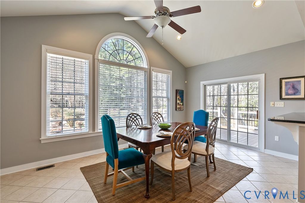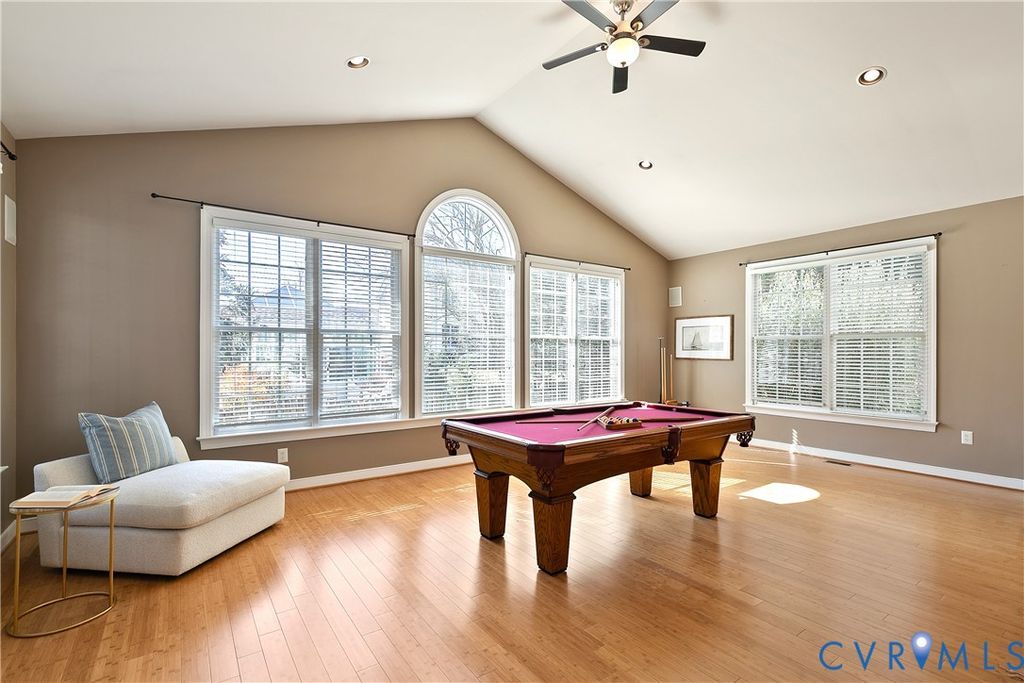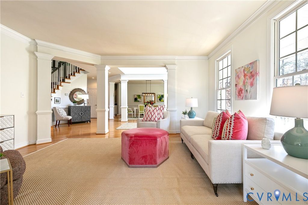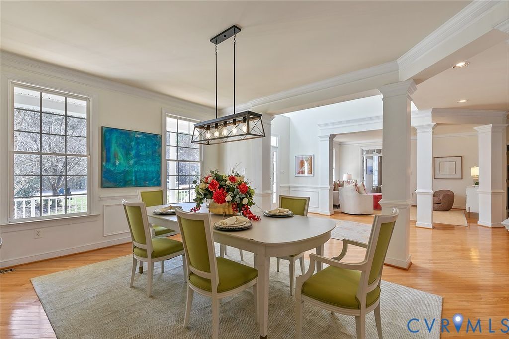 Situated in the established neighborhood of Hunton Estates, this beautiful and thoughtfully designed home has timeless architectural details and modern updates. The main level showcases formal living and dining rooms adorned with hardwood floors, crown molding, wainscoting, and a graceful turning staircase that is the home's focal point. French doors open to a light-filled conservatory, while the dramatic two-story family room features a vaulted ceiling, gas fireplace with decorative surround, and built-in surround sound. A private study with French doors and wood plank accent wall provides an ideal work-from-home retreat. The kitchen is both stylish and functional, offering granite countertops, painted cabinetry, stainless steel appliances, gas cooktop, double oven, walk-in pantry, built-in desk, and a spacious island with pendant lighting. The adjoining sunroom features vaulted ceilings, expansive windows, and direct access to the deck. Upstairs, the owner's suite includes a private sitting area, two generous walk-in closets, and an updated bath with frameless glass-enclosed shower, corner jetted tub, dual vanities, and a state-of-the-art smart toilet. Three additional bedrooms complete the second level, each featuring ceiling fans, chair rail, two-inch white blinds, and ample closet space. One bedroom enjoys a private ensuite bath, while the remaining two bedrooms share a Jack-and-Jill bath. The third level provides exceptional flexibility "” a spacious rec room with skylight, large fifth bedroom with walk-in closet, a full bath, and walk-in storage. The home sits on a wooded 1.3 acre lot where you can retreat to a truly private backyard with a custom heated pool, composite deck (2024), expansive patio, and shed with electricity. Hunton Estates is conveniently located with easy access to Short Pump, Innsbrook, and downtown Richmond.