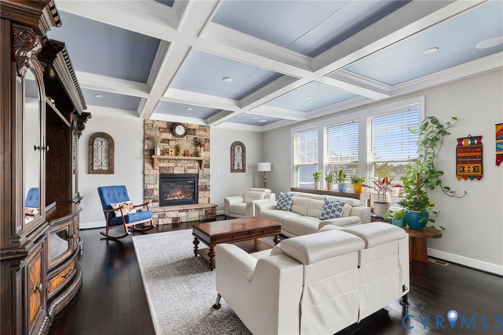 Luxury Living with Room to Grow right off Nuckols Rd Corridor- Turnkey 5 Bedroom and 4.5 Bathroom 5,030 Sq. Ft. Home (5th Bedroom and full bath in basement) in a quiet cul de sac. Step into style and comfort in this beautifully maintained open flowing home with flexible living space. The main level features rich wide plank hardwood floors throughout, elegant coffered ceilings, recessed lighting, built-in surround sound, and a stunning stone gas fireplace. The chef's kitchen is a dream with granite countertops, soft-close cabinetry, a spacious island, stainless steel appliances, glass tile backsplash, and built-in wine fridge. Enjoy meals in the light-filled vaulted morning room or host gatherings on the brand-new composite deck overlooking a fenced backyard with gas rough-in for grilling. First Floor offers office with glass french doors and formal dining room with double chandelier. Upstairs, brand-new carpet flows throughout. The expansive primary suite offers a true retreat with double-door entry, a sitting area, dual walk-in closets, and a luxurious ensuite bath with jetted tub, oversized walk-in shower, and rain shower head and heated floors. All secondary bedrooms feature walk-in closets as well. Additional Full Bath added to one of the bedrooms and 2nd floor Laundry Room makes life easier. The massive finished basement includes a new full bath, large open Rec area, and a versatile flex room ideal as a home gym, 5th bedroom, or another private office. Walk-in Storage in basement. Additional features include a tankless gas water heater, Nest thermostat and doorbell, and built-in garage storage. Conveniently located near Holman Middle and Rivers Edge Elementary, with easy access to shopping, dining, and commuter routes "” this home checks every box for luxury, lifestyle, and location.