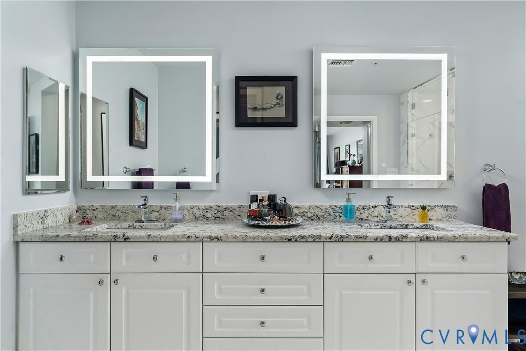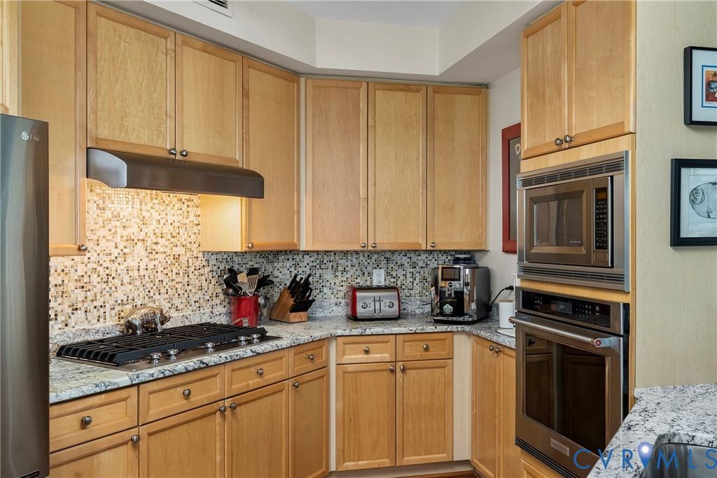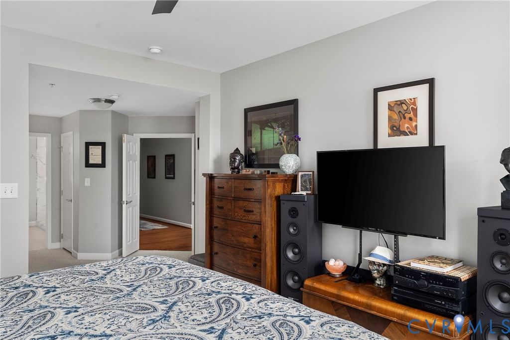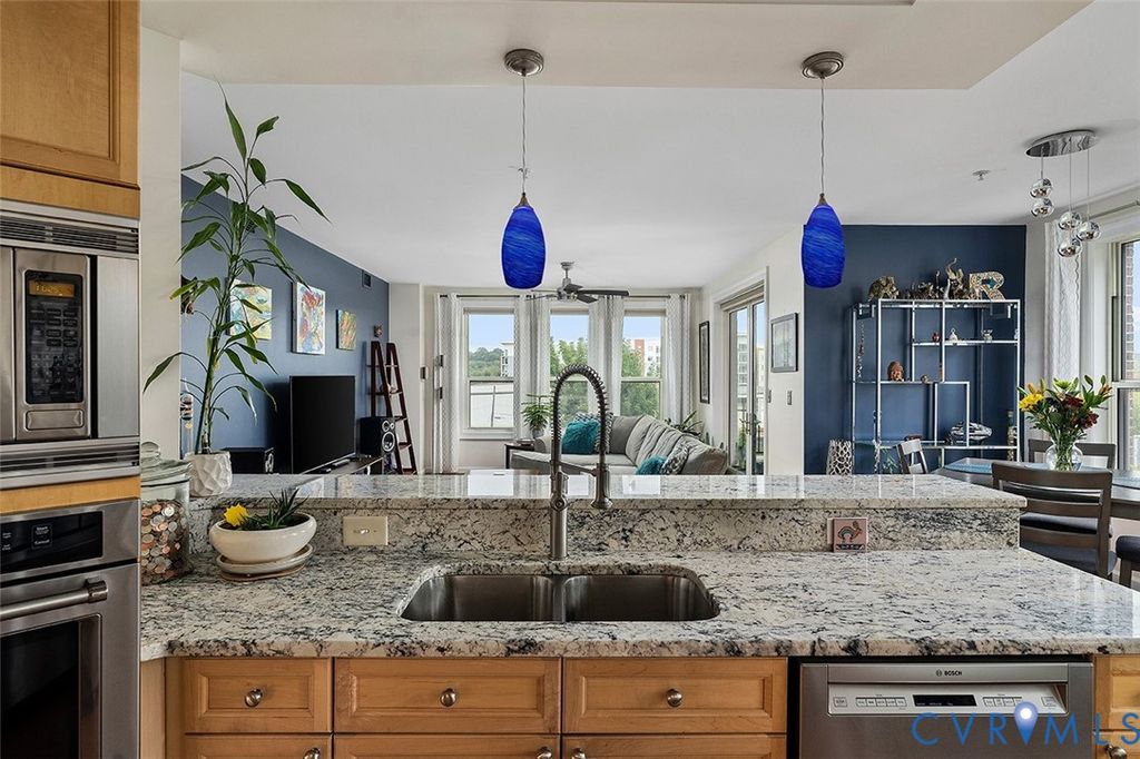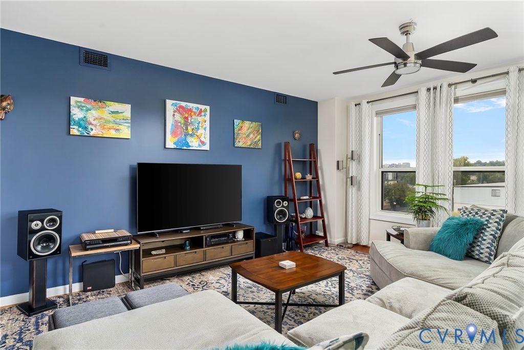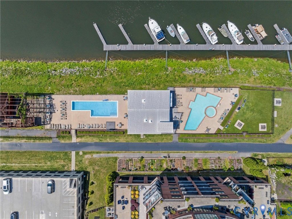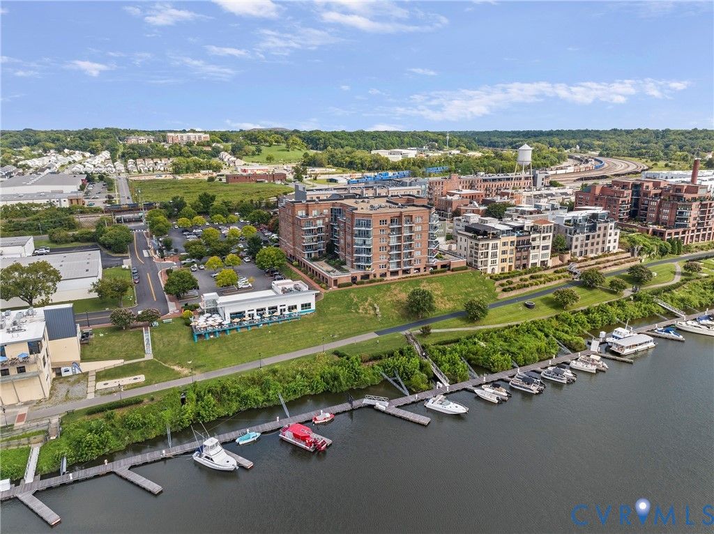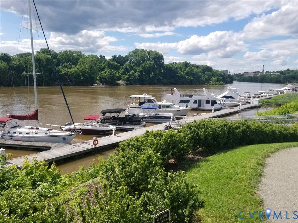 Come home to the desirable Sky Line Condominium Building on the banks of the James River at Rocketts Landing. This move-in ready 2-bedroom, 2-bath designer condo features a newly renovated oversized spa shower in the Primary Suite. Wood floors run throughout the open living, dining, and kitchen areas, highlighted by custom cabinetry, stainless appliances with gas cooking, and a designer backsplash. A covered private balcony off the living room is perfect for grilling and entertaining. The Primary Suite includes two walk-in closets, a generous bedroom, an adjoining linen closet, and a spacious full bath with dual vanities and updated stone countertops. The second bedroom offers skyline views, soft carpeting, and the convenience of a Murphy bed"”ideal as a guest room or office. Additional features include secured covered parking, a same-floor storage unit, custom blinds, decorator paint colors, and all the benefits of a maintenance-free, secured-access luxury building. Sky Line offers a building generator, two Otis elevators, and two spacious terraces overlooking the James River, the Capital Trail, and downtown Richmond. At Rocketts Landing, enjoy three on-site restaurants, two breweries within a 10-minute walk (Stone and Triple Crossing), volleyball courts, a 56-slip marina, garden plots, and canoe/kayak storage. Less than 10 minutes to Richmond International Airport with quick access to I-64, I-95, and I-195. Rocketts Resort living at its best. Desirable corner unit with wonderful views of nature, the river, skyline, Churchill, and Fulton Hill. Urban living at its best. Steps away to the free "PULSE" bus which runs from Rocketts Landing to Willow Lawn! Carefree resort living on the banks of the James River just across the City of Richmond line in Henrico County which offers lower property taxes!