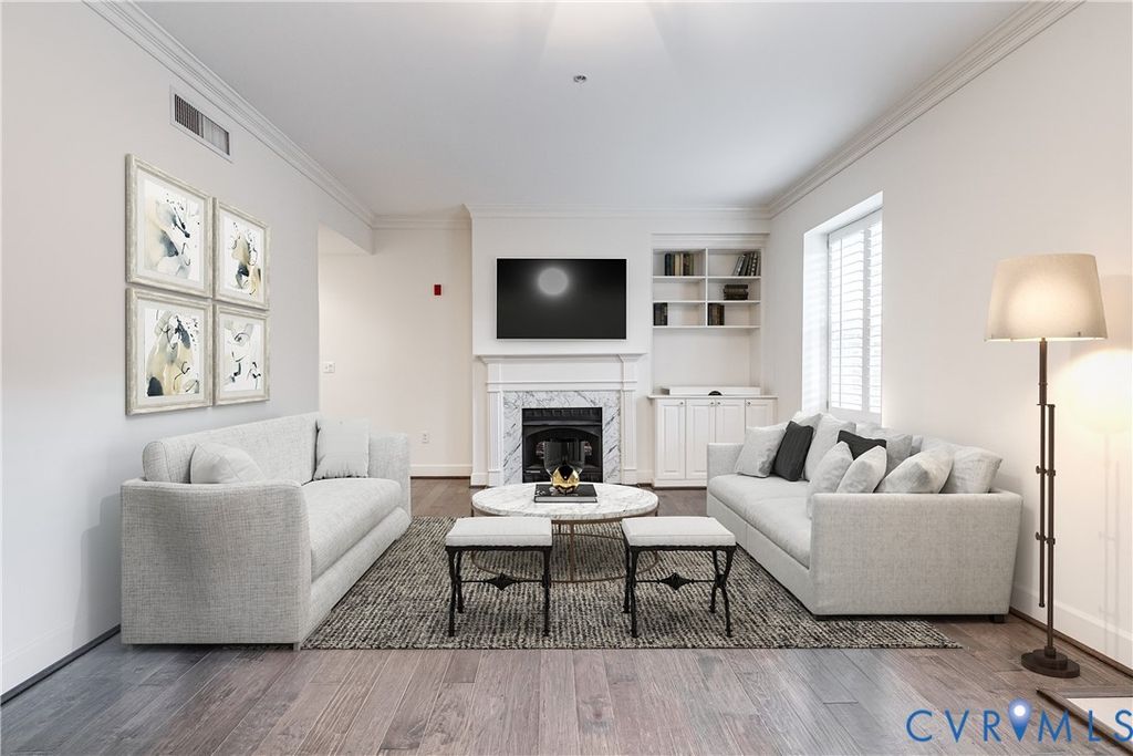 Discover this spacious 1,274 sq. ft. condo in the prestigious One Monument Avenue community which received the Central Virginia Chapter Condominium Assoc. Institute award for 2025. This elegant residence offers a freshly painted comfortable floor plan with an eat-in kitchen, two bedrooms with new carpeting, and two bathrooms, perfect for relaxing and entertaining. This condo has ample natural light with a well-appointed kitchen featuring granite countertops and stainless-steel appliances. Enjoy the convenience of an in-unit laundry with built-in shelving, storage space and closet space with built-in shelving. Residents have access to a range of premium amenities, including a doorman, a well-appointed lobby, a state-of -the-art fitness center, an owner's club room and a conference room. Step outside to the rooftop terrace with breathtaking city views or relax in one of the two private secure courtyards complete with grilling stations and seating areas. Best of all, this unit has two deeded garage parking spaces and boasts a high walk score, providing easy access to VCU, downtown attractions, shopping, dining and entertainment. This building was masterfully designed by award-winning architect Charles M. Robinson, who also designed the iconic Altria Theater, adding historical significance and architectural distinction to this highly sought after exceptional property.