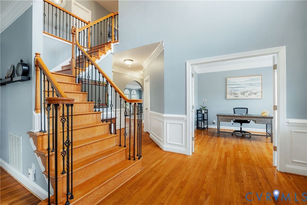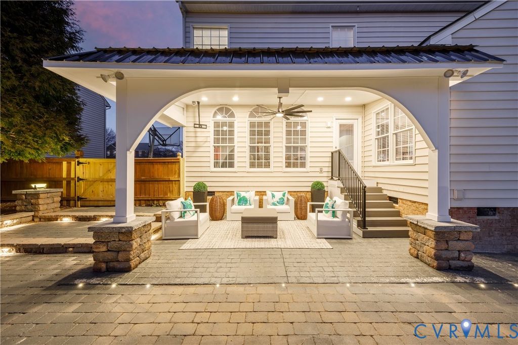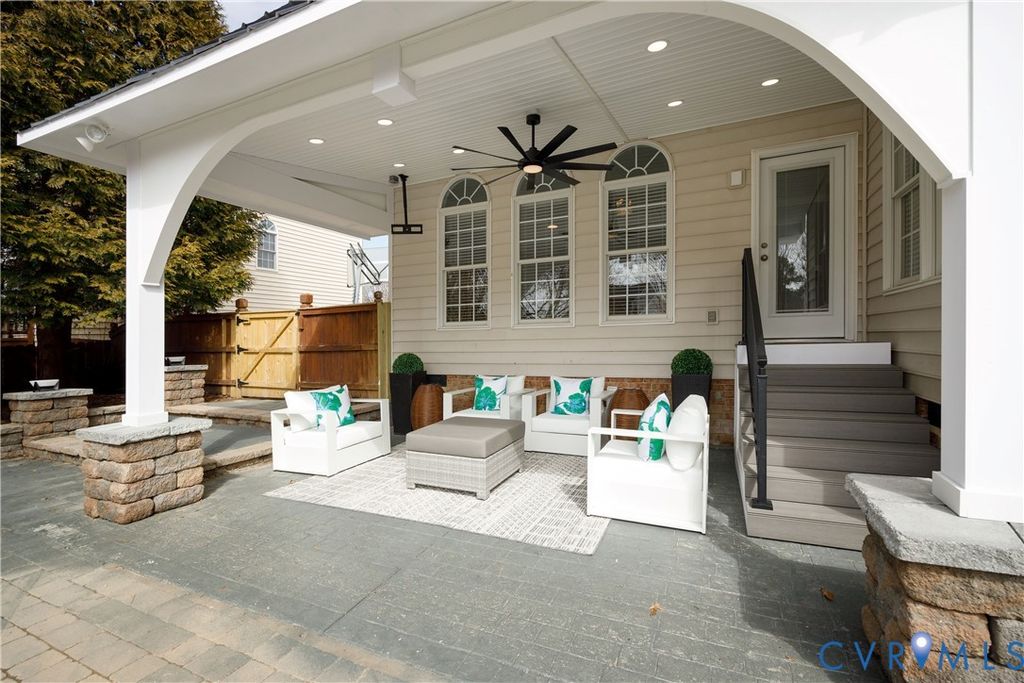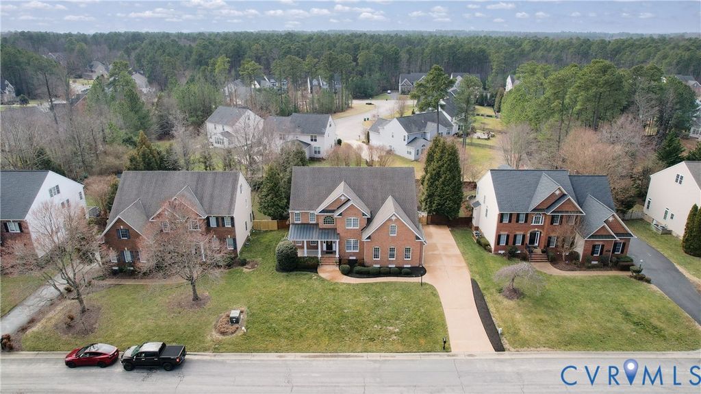A rare turnkey luxury home offering exceptional architectural volume, a true chef-caliber kitchen, and resort-style outdoor living within walking distance of Deep Run High School. Thoughtfully upgraded and meticulously maintained, this transitional home presents a best-in-class opportunity for buyers seeking scale, quality, and lifestyle without the burden of renovation. The interior features soaring 9-foot ceilings on both the main and upper levels complemented by a dramatic 12-foot ceiling in the morning room, filling the home with natural light and architectural presence. The heart of the home is a professionally renovated chef's kitchen with a pro-grade Forno 48-inch gas range and built-in refrigerator, custom cabinetry to the ceiling, and an imported Italian quartzite waterfall island with full-height slab backsplash designed for serious cooking and effortless entertaining. Located on the second level are five generously sized bedrooms anchored by a grand primary suite with a boutique-scale walk-in closet. All baths feature thoughtful upgrades including refinished cabinetry plus seamless shower doors in the guest baths. The finished third floor with the 4th full bath spans the entire house and provides exceptional flex space for a media room, home office, gym, or 6th bedroom guest retreat. The rear yard has been transformed for resort-style living, and brand-new additions include a custom covered pavilion with architectural stone columns and metal roof, hardscaping, integrated lighting, and multiple entertaining zones for year-round enjoyment. With comprehensive upgrades including the chef's kitchen renovation, outdoor pavilion and hardscape, upgraded wood flooring throughout, new main-level HVAC, smart home features, permanent programmable exterior lighting, and premium mechanical and exterior improvements, this offering is truly move-in ready at a level rarely available in this location featuring Henrico's premium Shady Grove/Short Pump/Deep Run public schools.
