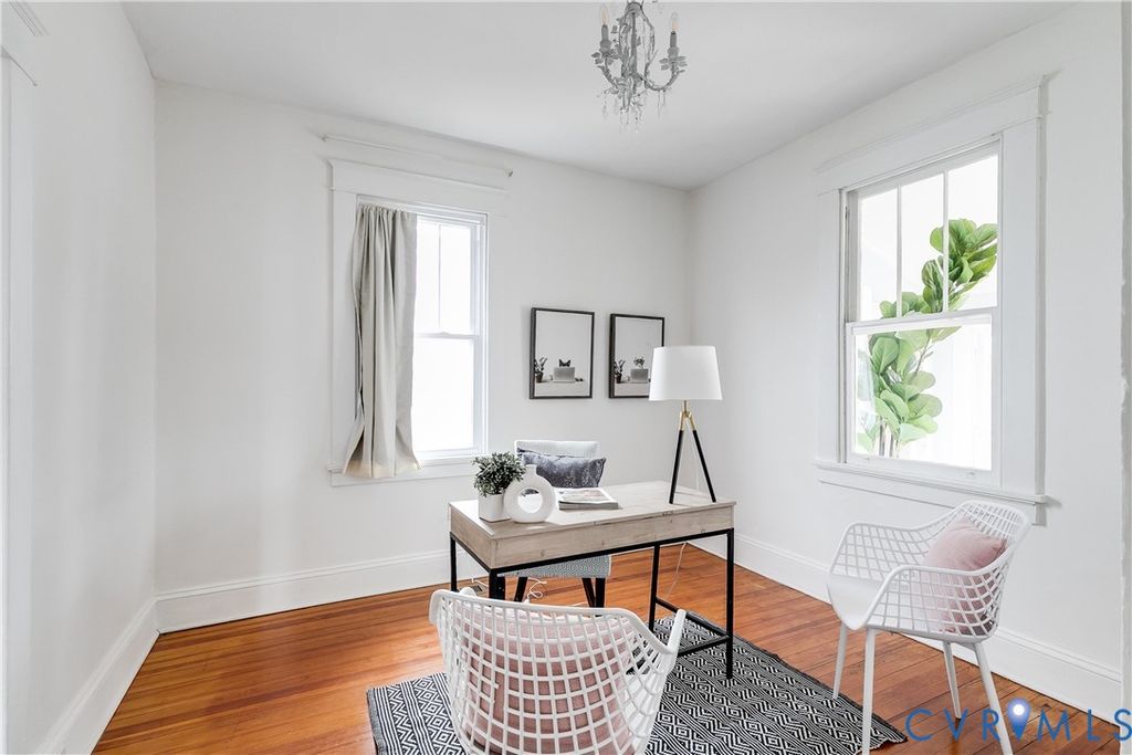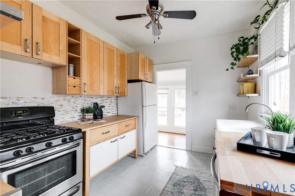 Nestled away in beautiful Montrose Heights and perfectly positioned on just over a quarter acre of lush outdoor space, this sun-filled corner-lot cottage is just what you've been waiting for! A charming full front porch, complete with a swing, sets the tone and invites you to slow down and stay awhile. Inside, you'll find hardwood floors throughout, tall ceilings, updated windows w/ blinds, and an abundance of natural light that fills every room. The living and dining spaces provide ample space for entertaining and are highlighted by a beautiful custom wood floor inlay. The kitchen offers timeless character with generous storage, gas cooking, butcher block countertops, open shelving, and a well-preserved vintage enamel sink that adds warmth and personality. The recently remodeled bathroom features stylish tile flooring, a new vanity, and an upgraded tub/shower with a stunning honeycomb tile surround and niche. Three comfortable bedrooms include closets and ceiling fans, while the sun-drenched Florida room along the rear of the home provides the perfect flex space - ideal for plants, relaxing, or hobbies "” and includes a convenient washer and dryer closet. Outdoor living shines here. The oversized rear deck is perfect for entertaining and spring cookouts, while the expansive fenced backyard is truly a gardener's paradise, filled with garden beds, herbs, berries, and fruit trees including peach, apple, and apricot (see supplements for details on the garden!). And the archway along the brick path is covered in lavender white wisteria vines - we can't wait for spring either! A detached shed offers additional storage for tools and equipment. Conveniently located near breweries, the Capital Trail, dining at Blue Atlas and other favorites, this home offers the perfect blend of charm, space, and accessibility.