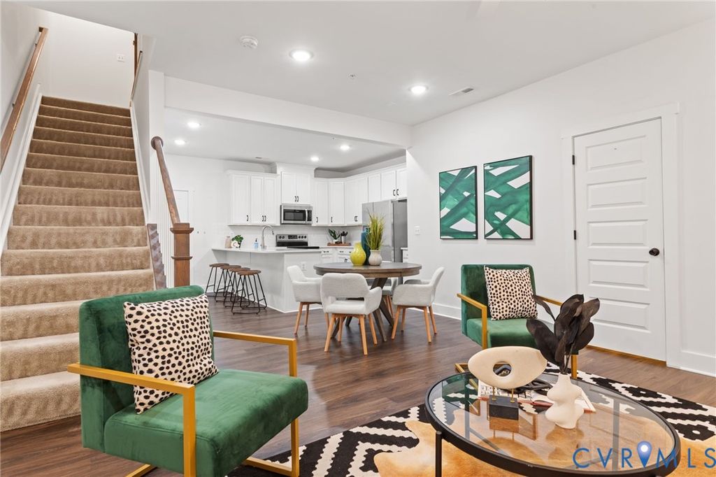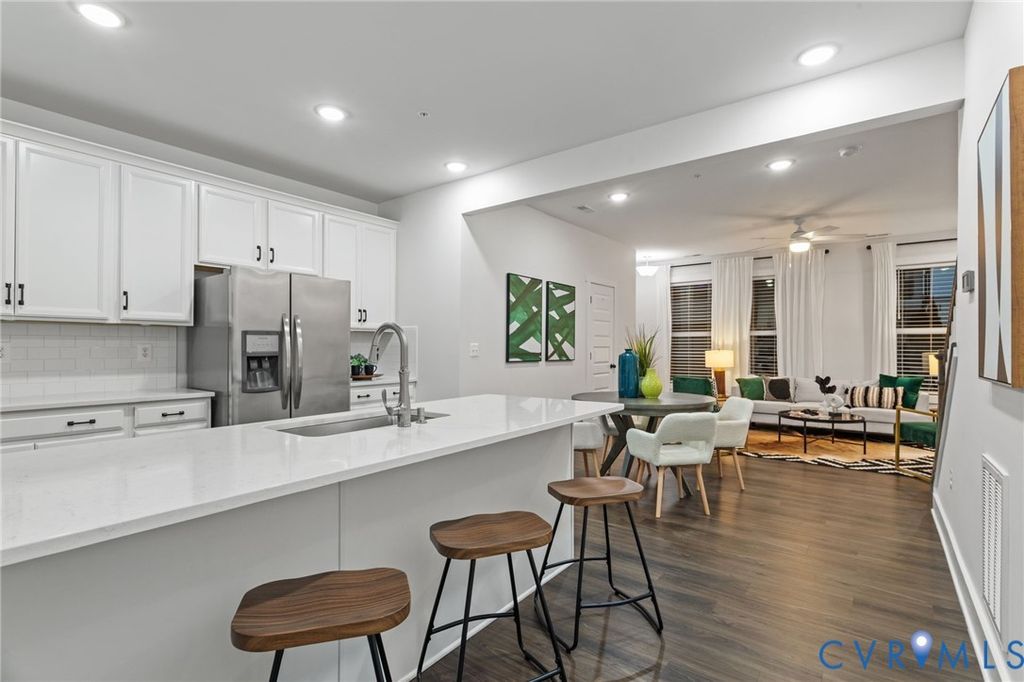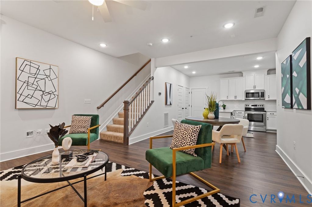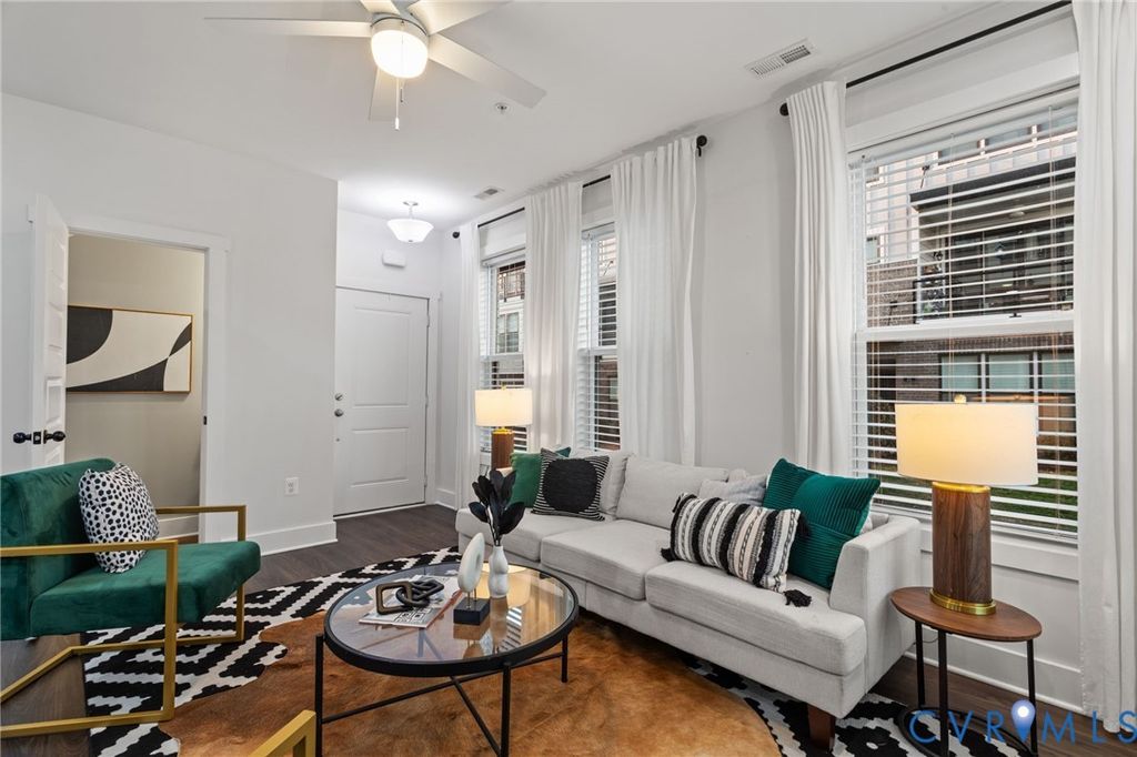 Meticulously maintained and freshly painted throughout, this thoughtfully designed home blends modern comfort with stylish finishes in one of RVA's most desirable riverfront communities "” and, it's an end unit! Step inside to discover tall ceilings, sun-filled windows, and durable LVP flooring that flows throughout the main level. The bright, inviting kitchen features crisp white cabinetry, Quartz countertops, a peninsula with bar seating, stainless steel appliances, and a sleek tile backsplash. Upstairs, you'll find two generously sized bedrooms, including a spacious primary suite with two walk-in closets and a well-appointed ensuite bath complete with a double vanity, tile flooring, a private water closet, and a glass-enclosed walk-in shower. Down the hall, a versatile flex room with a sliding barn door and access to the balcony offers the ideal space for a second living area, home office, or an easy conversion into a third bedroom. A stylish second full bath with a tub/shower combo and tile surround completes the level. Parking is effortless with a paved driveway and attached one-car garage. Beyond the home, enjoy everything that makes Rocketts Landing one of Richmond's most sought-after communities"”just steps from the James River and Capital Trail. Residents enjoy access to riverfront pools, a marina and boat club, kayak storage, a 24-hour fitness center, sand volleyball, picnic areas, and a dog park, all within walking distance of local favorites like The Boathouse, Island Shrimp Co., and Rocketts Market Café. This is riverfront living at its best"”you're going to love it here.