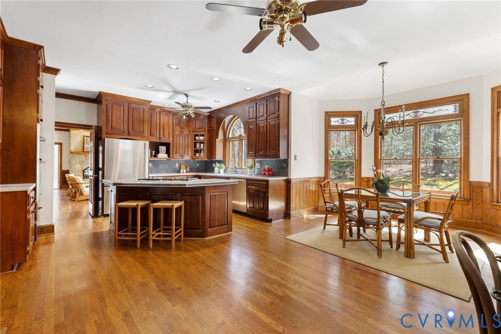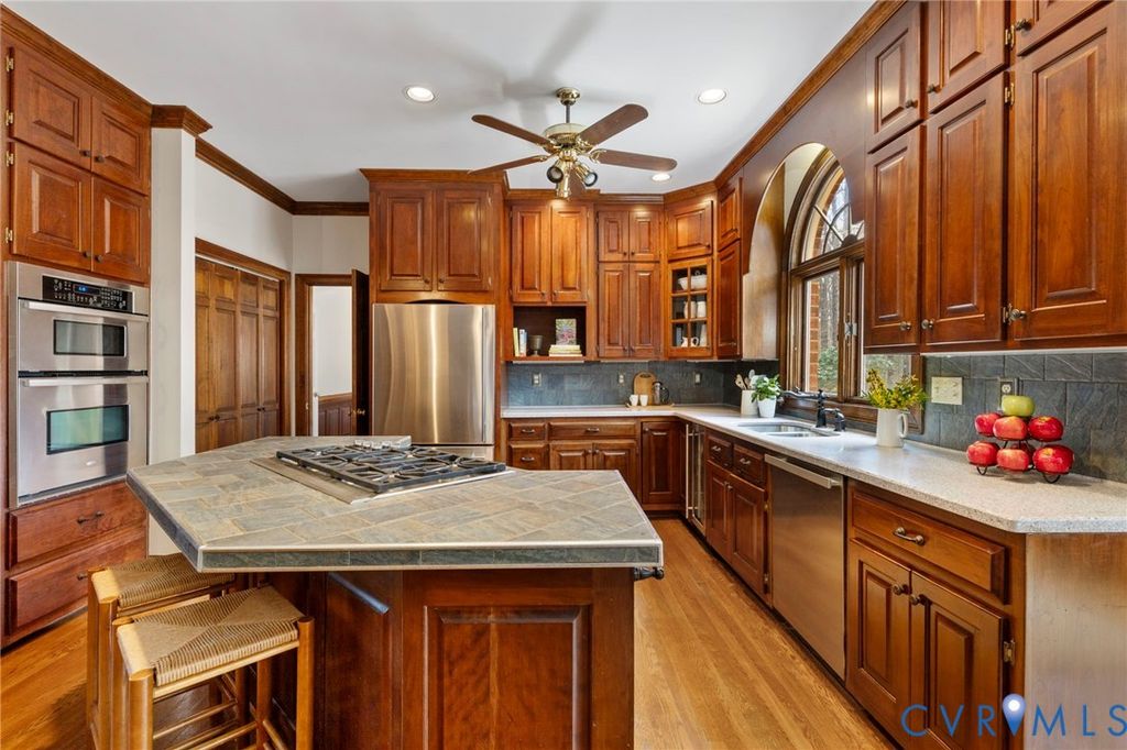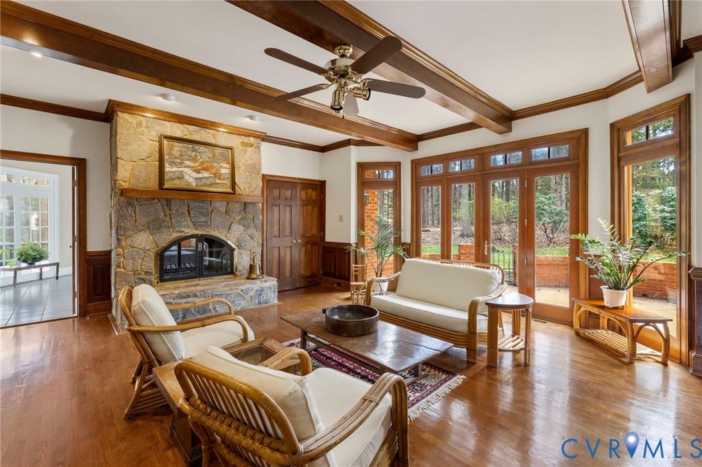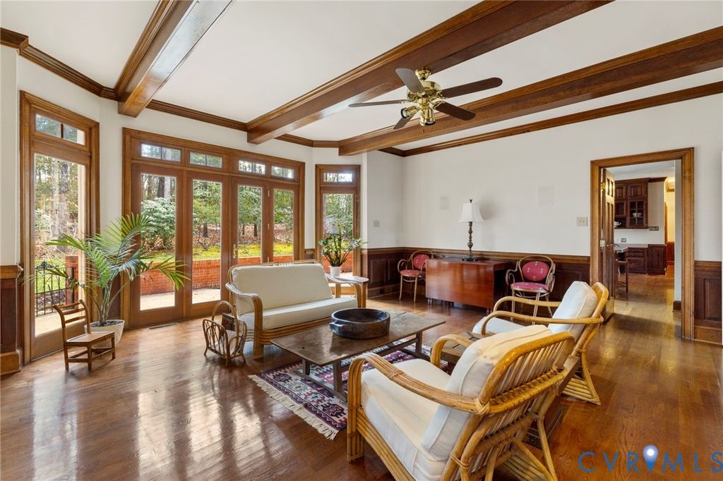 Located off Historic Old Gun Rd in the prestigious gated community of Reeds Landing, this stately four-sided brick Georgian transitional residence"”custom built in 1989"”commands a beautifully gently rolling 1.14-acre setting. Encompassing over 5,300 square feet of living space, the home reflects timeless architecture, exceptional craftsmanship, and generously scaled rooms designed for both comfortable living and elegant entertaining. The etched leaded-glass mahogany front door opens to a dramatic 2-story foyer with elegant archways leading to the formal LR and DR. Throughout the home, its classic architectural and exquisite millwork details include dentil, crown, and chair rail moldings, 3 distinctive styles of wainscoting, custom built-ins, bay windows, and vaulted ceilings. Two double-sided wood-burning fireplaces (gas ready) provide striking focal points, each featuring its own unique surround design. The main level offers 9+ foot ceilings, and beautiful hardwood flooring runs throughout most of the home. Rich custom cherry cabinetry is featured throughout the large eat-in Chef's kitchen, family room, laundry room, and private office, adding warmth and craftsmanship while providing abundant storage and functional workspace. The third floor offers approximately 600 square feet of unfinished space with its soaring ceilings and easy access from the upstairs hallway"”an exceptional opportunity for future expansion and additional living space. Residents of Reeds Landing enjoy open green space, playground, basketball court, community room, and an active neighborhood social calendar. The home is zoned for desirable Chesterfield County schools and is conveniently located near shopping, dining, and downtown. Recent updates include exterior paint (2025) and new interior paint and carpeting (2026). MIELE dishwasher (2024) Stained glass window inserts are removable. A timeless residence of distinction, ready for its next chapter. You don't want to miss this opportunity to make it your own.