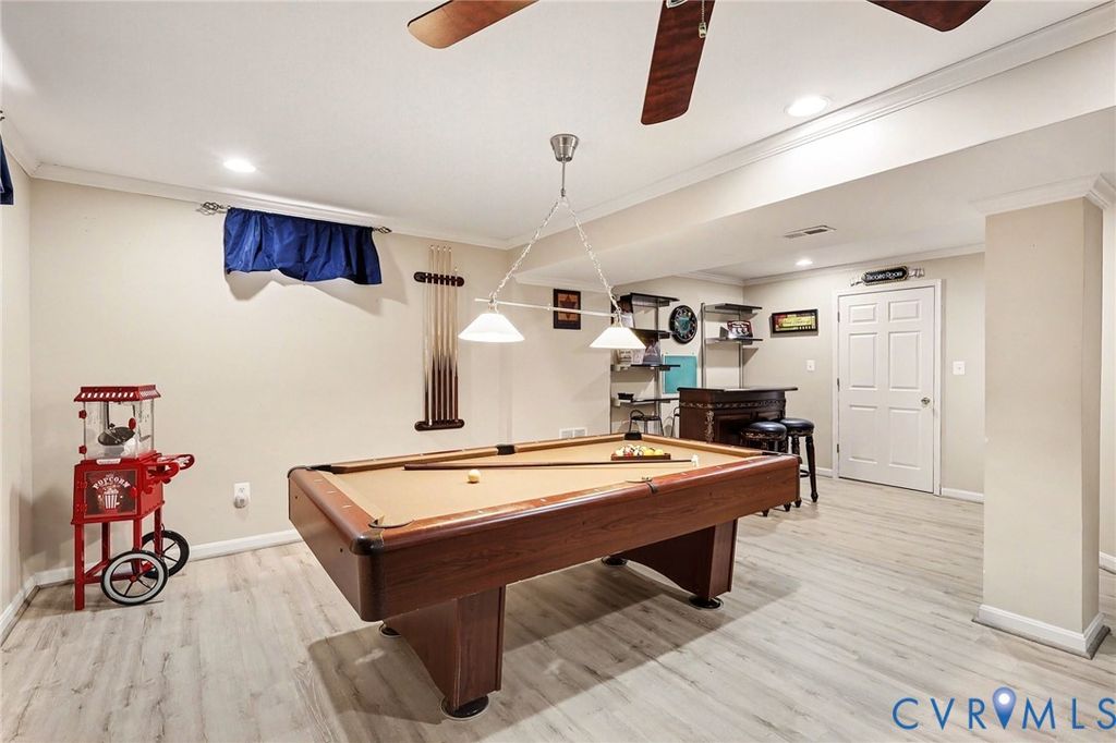 Stunning 3,880 Sq Ft Perry Farms Colonial on a Private Cul-de-Sac! Welcome home to Perry Farms! The fully finished basement is a SHOWSTOPPER!"”an entertainer's paradise! Host the ultimate movie nights in your private home theater or enjoy a game of billiards on the pool table, which also conveys. The lower level is rounded out by a cozy electric fireplace that stays with the home. The weight equipment in the basement conveys as well. Situated on a quiet cul-de-sac, this expansive 4-bedroom home boasts nearly 3,900 finished square feet over three levels, offering the perfect blend of comfort and entertainment. The main level shines with updated touches, including a brand-new dishwasher, while the upper level features spacious bedrooms and a convenient layout with 2 full and 2 half baths throughout the home. Peace of mind is standard here, with a roof replaced in 2017 and a new water heater just installed. Step outside to your fenced-in backyard oasis. Whether you are grilling on the deck, relaxing on the patio, or tending to the garden with the help of the in-ground sprinkler system, this outdoor space is ready for summer. A storage shed conveys for all your lawn equipment. Unbeatable location for commuters: minutes to the commuter lot, I-95, local schools, shopping, dining, and the farmers market. This home has it all! This home has a VA Assumable loan at 2.75%...don't miss out on this deal!