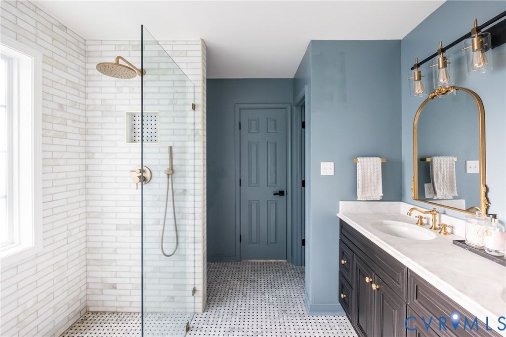You won't want to miss this fully renovated home in the heart of Chesterfield County. Since purchasing the home, the owners have thoughtfully and extensively updated nearly every major space, creating a home that feels brand new without the wait or price tag of new construction. Stepping inside, you'll immediately notice the natural light pouring in and the luxury vinyl plank flooring that runs seamlessly throughout the main level. From the foyer, the formal dining room sits to your left and a private study to your right, offering flexible space for entertaining, working from home, or both. Continue to the spacious living room, where the open layout makes everyday living feel easy and connected. The kitchen has been fully renovated with new cabinetry, stone countertops, stainless appliances, and upgraded hardware throughout. The expansive counter space with integrated sink provides both function and style, creating an open, airy feel that flows beautifully into the main living area. Upstairs, you'll find all four bedrooms, two fully renovated bathrooms, and a conveniently located laundry room. The primary bedroom is a true retreat, highlighted by a luxurious en-suite bathroom that is truly next level. Wrapped in marble tile from floor to ceiling, the walk-in shower features frameless glass, a rainfall showerhead, designer brass fixtures, built-in niche, and custom floating vanity. These high end finishes are rarely available at this price point. Additional improvements since 2022 include updated lighting, fixtures, and finishes throughout, giving the entire home a cohesive, modern look and feel. HVAC was replaced in 2019 and the water heater in 2016. Additionally, the home is within walking distance to Cogbill Park, offering easy access to playgrounds, trails, sports fields, and green space right in your neighborhood. If you've been waiting for something in Chesterfield that is truly move-in ready with high-end finishes already done for you, this is it.