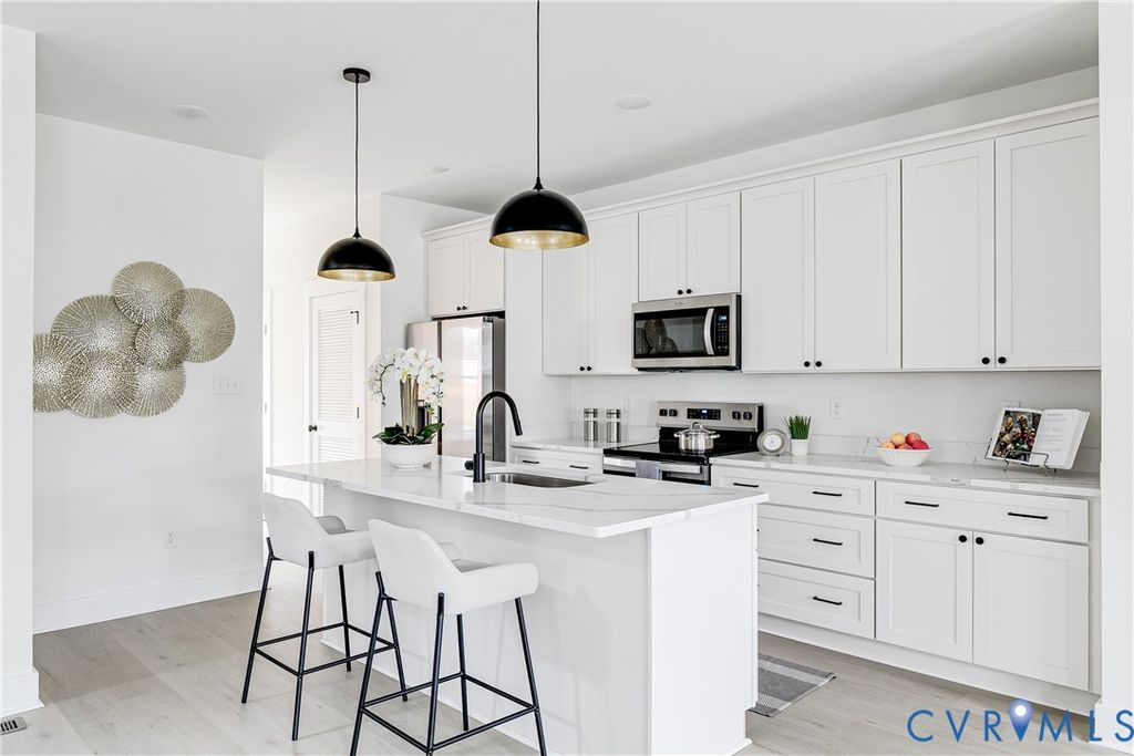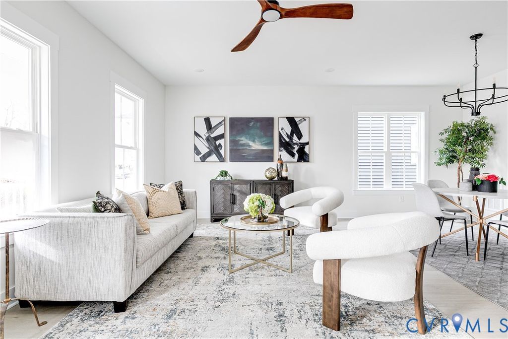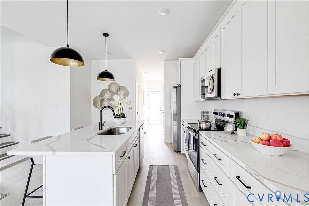Welcome to this gorgeous newly constructed home minutes from down town Richmond and featuring 3 bedrooms, 2.5 baths and 1,453SF. Enjoy elevated features and finishes such as 9' ceilings down stairs, LVP flooring throughout, 1st Floor Primary Suite, lots of built in storage, a larger level lot with alley access and a privacy fenced rear yard, a full covered front porch and so much more! Walk into the great room and enjoy a nice drop zone with bench and built in cubbies with a coat closet at the front door. Larger living room with lots of natura light overlooks the tree lined street and full covered front porch with sight line into the kitchen. Spacious kitchen with granite counter tops, SS Appliances, pantry, soft closing doors and drawers on the cabinets and a island with a nice sized overhang. Down the hall enjoy a nice sized laundry closet and a powder room just before you get to the back door. Rounding out the 1st floor is the Primary Bedroom Suite that offers a walk-in closet and an en-suite full bathroom with large format tile flooring, an oversized double vanity with quartz counters, matte black finishes & hardware, and a walk in tile shower with glass doors and tile to the ceiling! Enjoy a nice landing at the top of the stairs leading you into the bedrooms and hall bath. There are 2 sizable bedrooms that both feature lighted ceiling fans, double door closets, and they share a full hall bathroom that boasts tile flooring, oversized quartz top vanity, tub/shower combination with tile surround, and matte black finishes. Stop by and see this one for yourself!