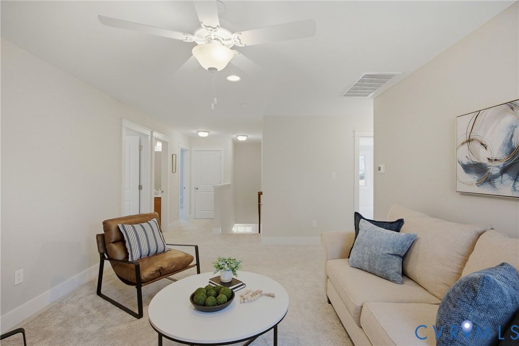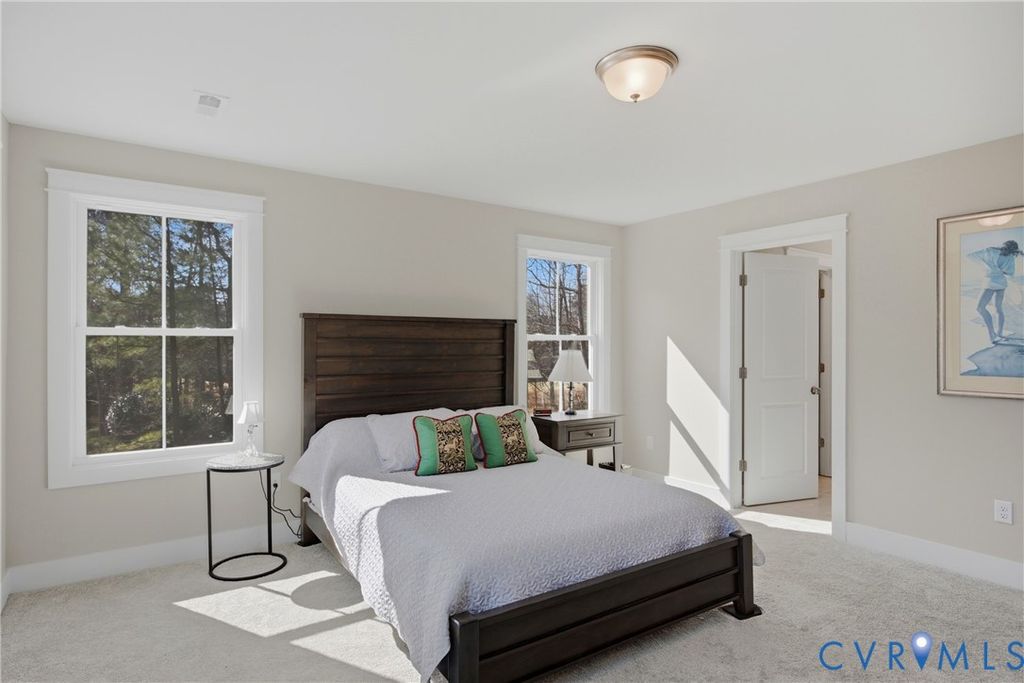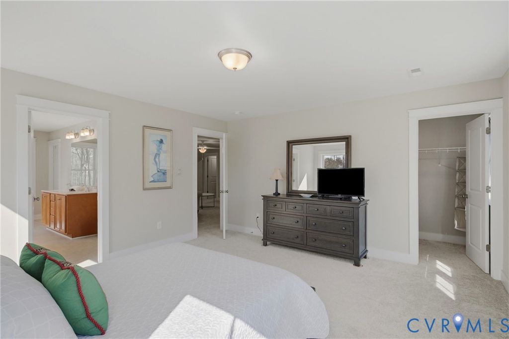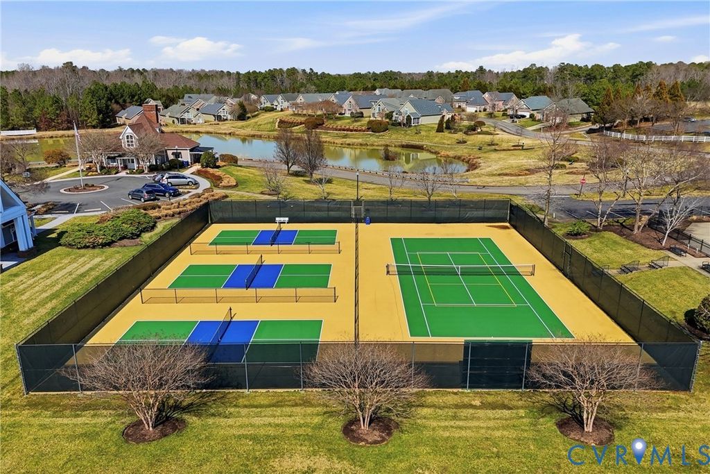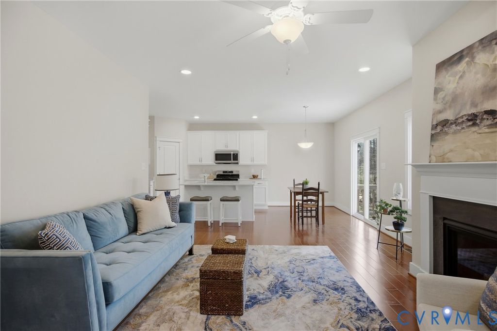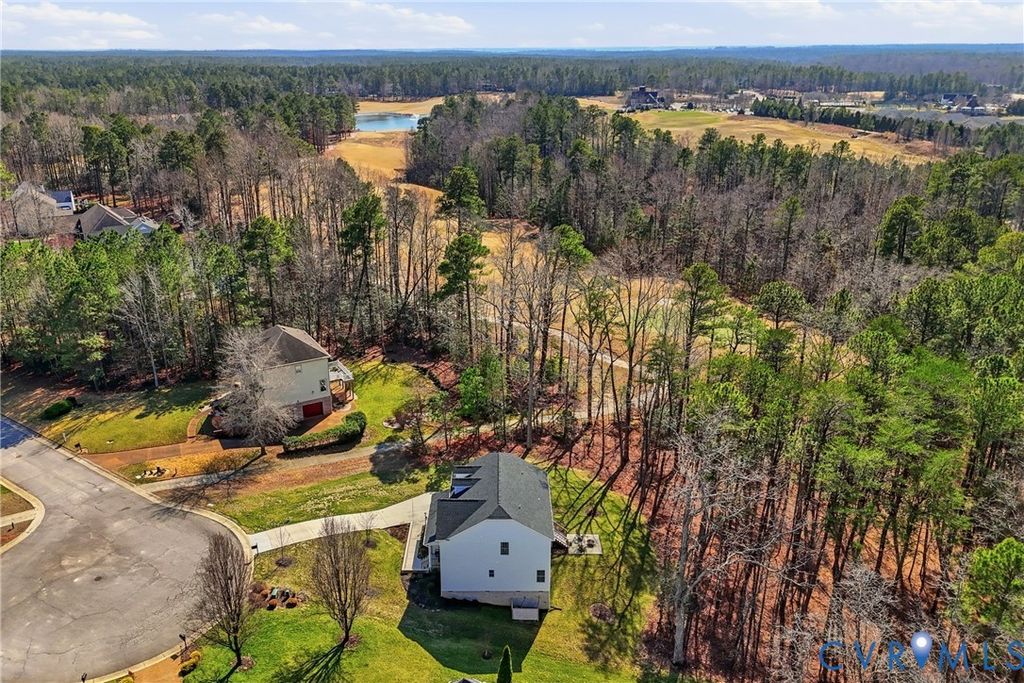 Located on the 10th green in sought after Brickshire Neighborhood!!! This home is practically brand new and shows like a new home with 4 bedrooms, 3 full baths, just under 2500 sq ft, 2 car side entry garage, and a nice sized 1 acre cul de sac lot!! The interior offers a beautiful flowing open floor plan with an upgraded trim package throughout the home. As you enter the nice foyer opens to the large dining area/ office area with lots of natural light and hardwood flooring. The Family room is large and offers hardwood flooring, recessed lighting, and gas fireplace with mantle surround. The Kitchen has a great color combination and boasts a large island with breakfast bar seating and granite countertops, gas cooking, SS Appliances, large pantry, custom 42' cabinets with crown molding trim, hardwood flooring, and a nice view to the golf course. Bedroom 2 is located on the first level with a large closet and connects to a full bath with tub/shower combo. Upstairs you will find a large loft area that is perfect for a kids entertaining space or quiet get away. The Primary Bedroom is large with his/hers walk in closets and a large En Suite Bath with soaking tub, walk in shower, double vanity, and tile flooring. Bedrooms 3 and 4 are nice sized and have nice carpeting and walk in closets. The exterior has Hardiplank Siding, 30 year dimensional shingled roof, 2 zone high efficiency Trane heat pump/central air system, 2 car side entry garage, whole yard irrigation system, and a Large Private Cul de Sac Acre Lot overlooking the 10th Green and backing to a preserve area. Brickshire community offers a clubhouse/pool area, gym, on site management, one of the top golf courses in RVA, lots of walking paths, tennis/pickle ball courts, and a great restaurant. Located conveniently to Richmond and Williamsburg and everything they have to offer. Scheduled your appointment now!!