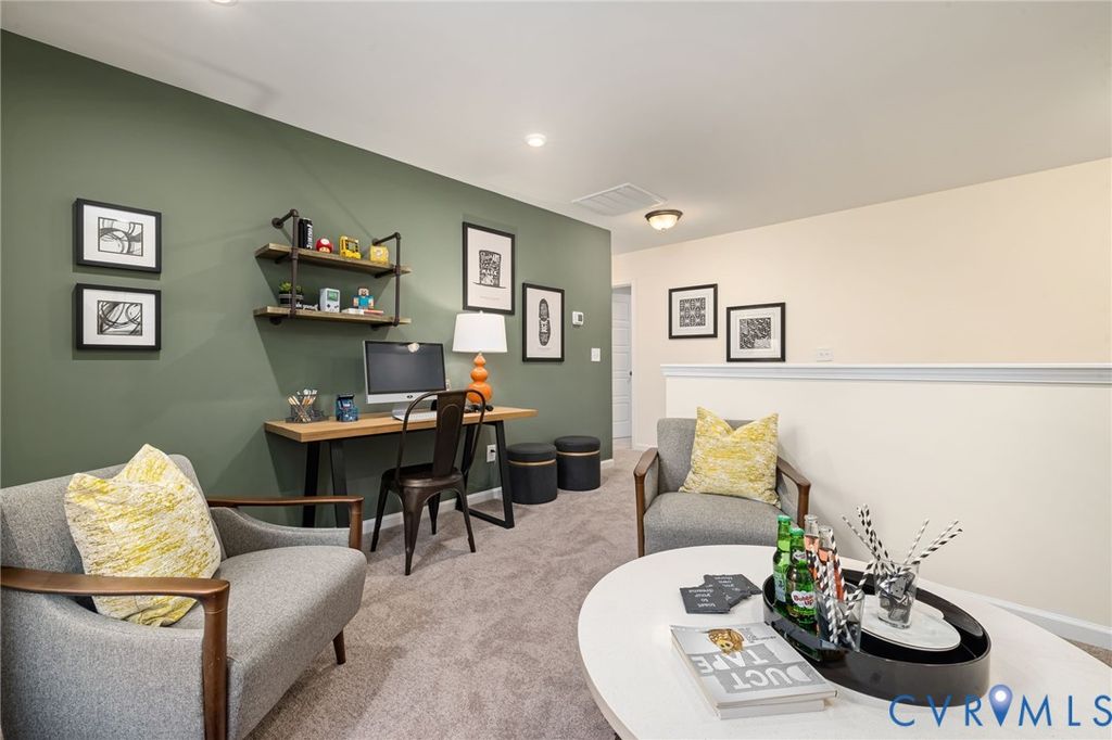 BUILD WITH US! Welcome to the Edison, offering 3-4 bedrooms and optional 3rd car garage. A wonderful flex space just off the foyer can be used however best fits your lifestyle: home office, formal dining room or separate den! The spacious family room opens directly into your dining area and kitchen! The kitchen offers loads of counterspace, a dedicated pantry for storage and the option to add a center island! Upstairs, you'll find your Primary Suite with large walk-in closet and private bath with double vanity. Three additional bedrooms, full bath and laundry room complete the tour. The Edison offers the following options: fireplace in family room, morning room with loads of natural light, covered or screen porch and 3-car garage! As you enter COMMUNITY GRAND OPENING! Nestled on spacious, wooded homesites, Qualla Trace offers a tranquil setting with easy access to Hull Street Road and Iron Bridge Road for dining, shopping, and entertainment. Enjoy stress-free commutes with convenient routes to Route 1, the U.S. Defense Supply Center and 288, making it simple to navigate the Richmond metro area. (HOME IS NOT YET BUILT - Photos & visual tour are from builder's library & shown as an example only. Features & options will vary).