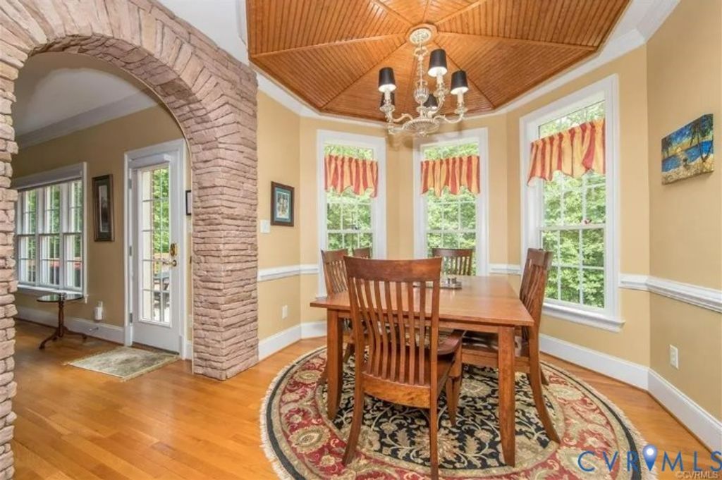 Extraordinary custom brick home situated on 2.29 private acres in Huntington, a prestigious neighborhood located within minutes of Midlothian & Rt. 288! Stunning exterior complimented by the 2 front porches & custom brick work. As you enter the spacious Foyer, your eyes are drawn to the dramatic split staircase with 2nd floor balcony. Arches & columns accent the formal Living & Dining Rooms. The Kitchen has raised panel cherry cabinets, granite counters, stainless steel appliances, island, a lovely angled bay window & a double-sided fireplace (shared with Family Room) with stone front. Family Room has a wet bar & full glass paneled door to large deck, perfect for entertaining. Hardwood floors throughout the 1st floor. The Primary Suite has a tray ceiling, angled bay window & built-out walk-in closet with all HW floors. 2 Bedrooms on the 2nd level share a Jack & Jill bath & the other Bedroom has its own ensuite. The finished Basement features 1500 sq.ft., with French door to covered exposed aggregate Patio! It also features a full Bath, Kitchenette, Office area & more! THIS HOME IS A MUST SEE!