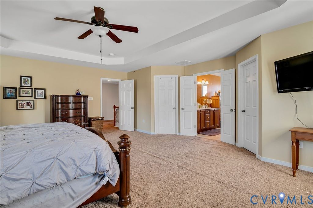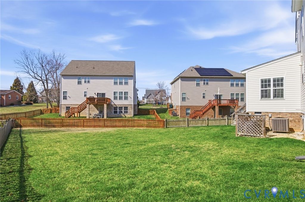 Welcome to 5113 Hungary Branch Ct, located in the highly sought after Glen Allen region of Henrico County. This stunning 3-story home boasts nearly 4,000 square feet of living space including 6 bedrooms, 5 full bathrooms, and 1 half bathroom. Upon arriving, you will be greeted by the brick exterior as you approach the front door. After entering in the foyer, you will be flanked by a living room on your right and formal dining room with a tray ceiling to your left. The spacious family room with an 18-foot ceiling and surround sound capability shares a 2-way gas fireplace with the living room. The open concept leads you into the kitchen featuring granite countertops, stainless steel appliances, walk-in pantry, an island, wet bar, peninsula countertop with bar stool seating, and a morning room. Down the hall from the kitchen is the home's 1st floor bedroom with its own dedicated full bath. The 2nd level houses 4 more bedrooms including the primary bedroom, equipped with a tray ceiling, 2 walk-in closets, and a full 5-piece fixture bathroom. 2 spare bedrooms share a Jack & Jill bath while the remaining bedroom on this floor has a full bath that is also accessible from the hallway. The laundry room can be found on this floor as well. The 3rd floor currently serves as a 6th bedroom with the 5th full bathroom but would also make for a nice rec room or workout space. The back deck off the kitchen takes you out into the fenced backyard ripe for pets and entertaining guests. The home includes 3-zone heating & AC for each level, front & back yard irrigation, and a new roof in 2025. Schedule your tour today to come see what this home has in store for you!