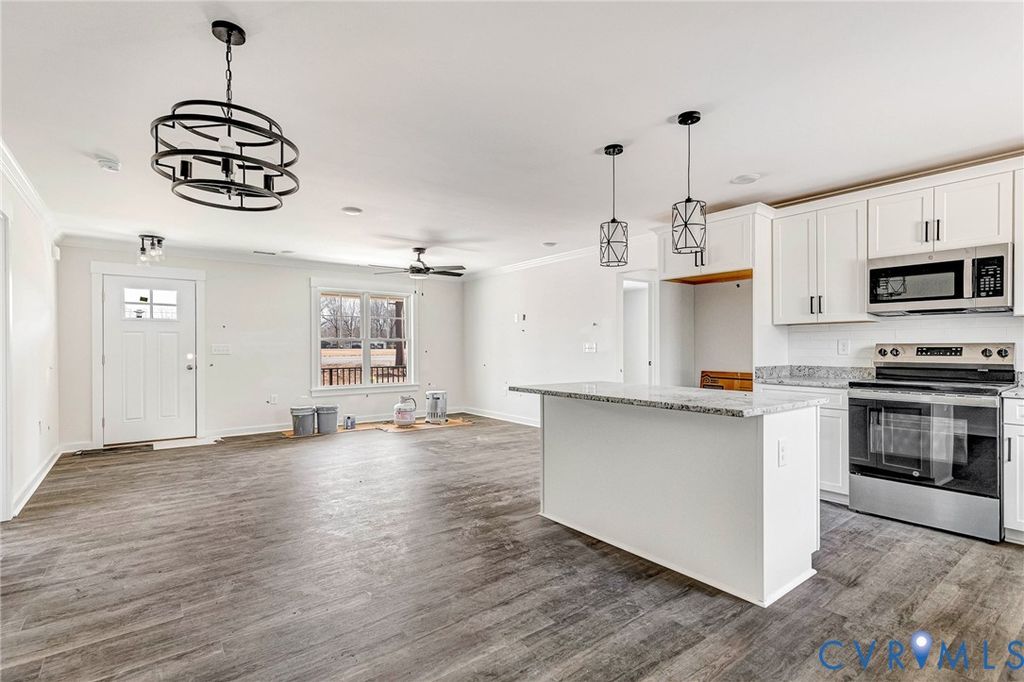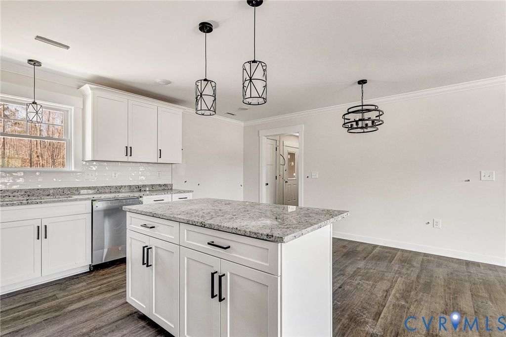 Brand-new construction with 3 bed 2 bath split bedroom plan offering modern style and a functional open layout! This beautiful home features stainless steel appliances, white cabinetry, granite countertops, and a large center island"”perfect for cooking, entertaining, and gathering. Durable LVP flooring runs throughout the home, providing both style and low-maintenance living. The spacious family room and kitchen flow seamlessly together and are accented with crown molding, creating an inviting and open living space. The primary suite includes crown molding, a massive walk-in closet, and a private bath designed for comfort and convenience. Additional highlights include a huge laundry room with plenty of space for storage and organization. Enjoy outdoor living on the large rear deck with a concrete sidewalk leading to it, along with a welcoming front masonry porch and front concrete sidewalk that add to the home's curb appeal. This move-in ready new construction home combines quality finishes, thoughtful design, and modern comfort. Home is at punch out stage so can be completed within a few weeks.