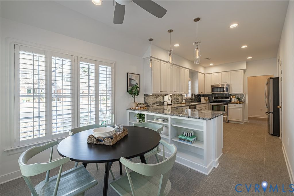 END-UNIT townhome in Morgan's Glen at Wyndham featuring a fantastic floor plan with a first-floor primary suite, freshly painted interior, renovated bathrooms, cathedral ceilings, gas fireplace, and a remodeled kitchen with MARBLE COUNTERTOPS, under-cabinet lighting, and UNDERFLOOR HEATING. Rare for this community, this home features an EXTENDED KITCHEN and breakfast nook, creating additional space for cooking and entertaining. Upstairs includes two generously sized bedrooms, a full bath, and a large loft ideal for a playroom, office, or lounge space, plus additional walk-in attic storage. Additional highlights include a direct-entry garage, California Closets in the primary bedroom, and large windows that fill the home with natural light. Major updates include kitchen remodel (2017), HVAC (2019), water heater (2021), and new refrigerator and washer/dryer (2024). Enjoy access to Wyndham's extensive amenities, including the Swim & Racquet Club, pickleball, and tennis courts, basketball courts, parks and playgrounds, and scenic walking trails, all just minutes from Short Pump shopping and dining.