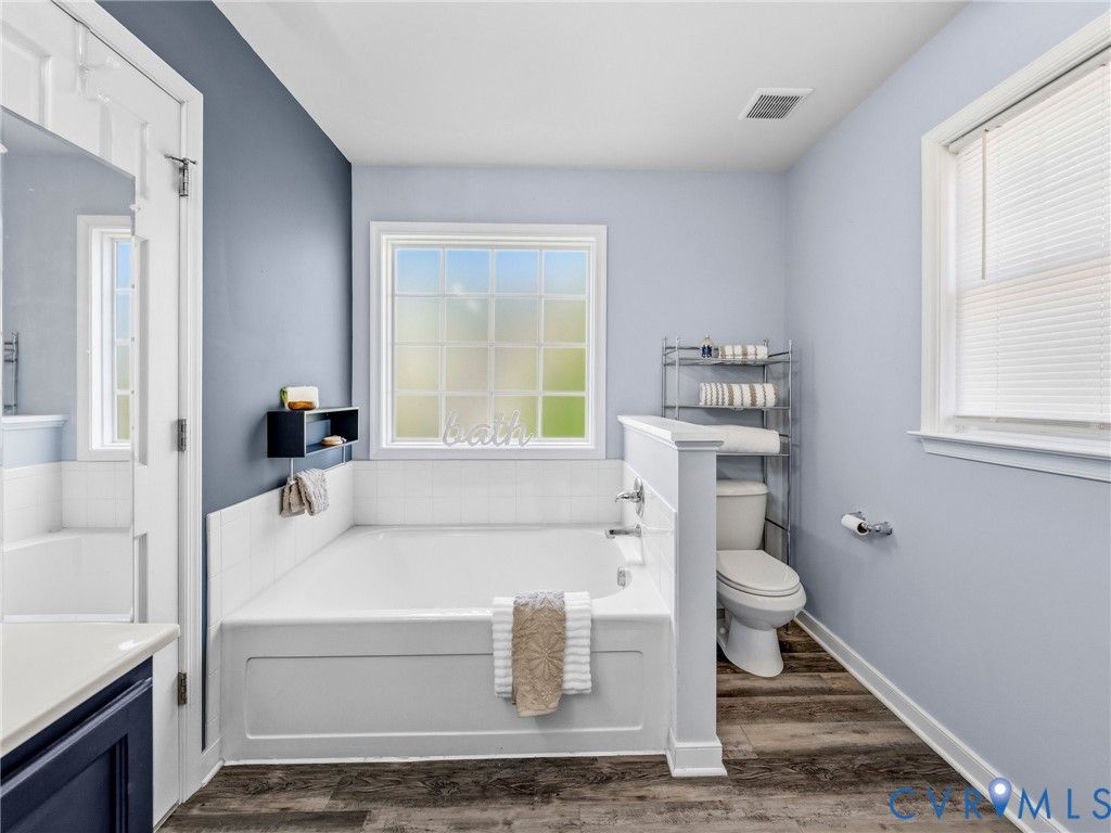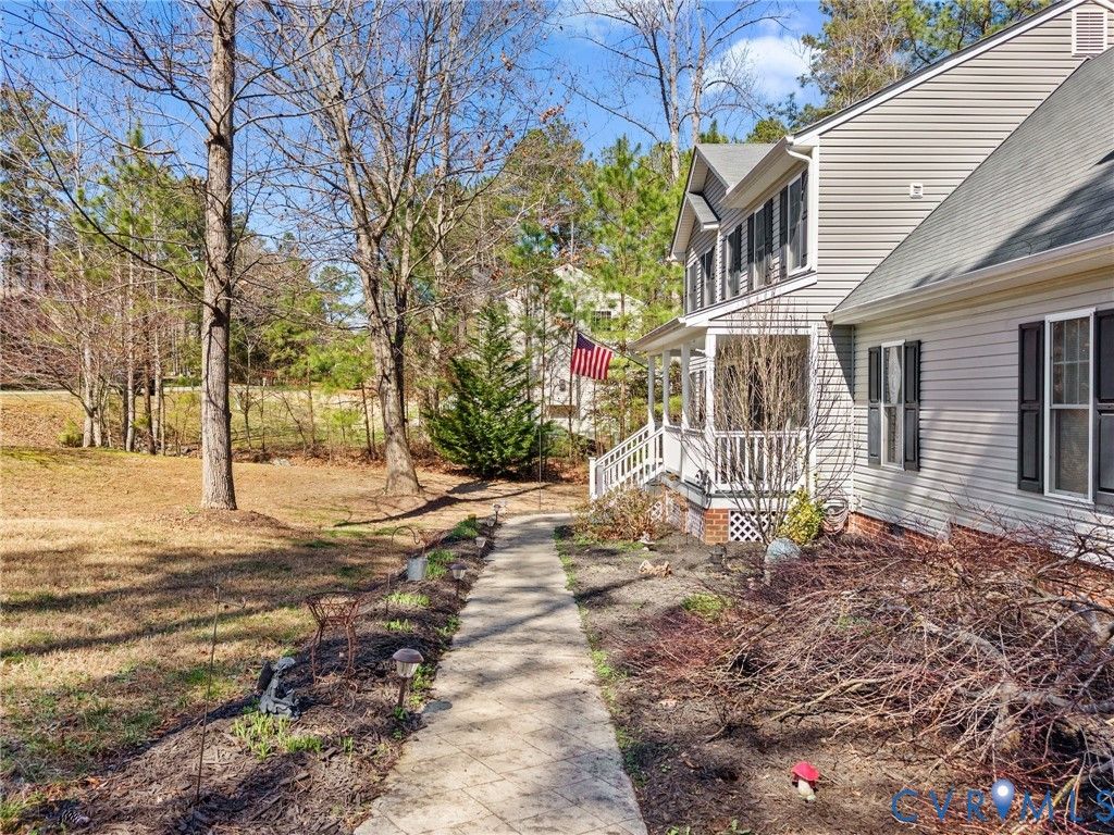 You are going to LOVE this immaculately maintained home that is tucked away on a spacious 1-ACRE lot in Rivers Trace! This beautiful 4-bedroom, 2.5 bath two-story home offers the perfect blend of privacy as it backs up to woods all while being close to local conveniences. Inside you will find plenty of room to spread out, while the outside is made even more appealing with a freshly stained 16' by 24' rear deck. The attached two car garage is fully finished and equipped with a mini-split, providing both heating and cooling so the space is ideal for a workshop, gym, and overall year round comfort. Additional highlights include low-maintainence vinyl siding, vinyl windows, a paved driveway, and ample storage underneath of the house. Inside, the first floor offers a drop-zone/mudroom off of the garage, while the laundry is on the second floor conveniently placed near the bedrooms. The open concept eat-in kitchen with views into the family room is great for entertaining while also offering a separate formal dining space. Upstairs the primary bedroom stuns with a tray ceiling, large en-suite bath, and generously sized walk-in closet. Three additional bedrooms and a large hall bath offer all the space your family needs! All of this just a short drive to Lake Chesdin, this home offers the space & outdoor living you have been looking for! Come inside and fall in LOVE!
