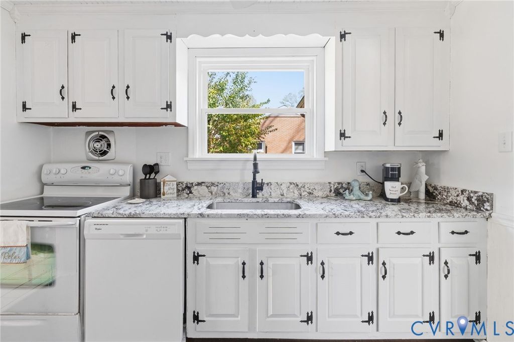 Welcome to this charming brick ranch home in Sandston, offering timeless character and thoughtful updates throughout. Beautiful hardwood floors flow seamlessly through the entire home, creating a warm and inviting atmosphere. The expansive family room is filled with natural light and centers around a stunning gas fireplace with a decorative mantle, making it the perfect gathering space. The gourmet kitchen is sure to impress, featuring granite countertops, a deep single-basin stainless steel sink, abundant counter and cabinet space, and a bright dining area ideal for everyday living. A formal dining room with classic chair rail molding provides a wonderful setting for hosting dinners and special occasions. Just off the main living space, a dedicated office area with a striking brick accent wall creates the perfect work-from-home environment. Around the corner, you'll find a convenient half bath with a pedestal sink. The primary bedroom features beautiful hardwood floors, a ceiling fan, and an oversized closet. Two additional bedrooms also offer hardwood floors, ceiling fans, and spacious closets. The hall bathroom showcases stylish basket-weave tile flooring, a modern vanity, and a tub/shower combination with a sleek glass door enclosure. Step outside to the screened-in porch, an ideal space for relaxing or entertaining while overlooking the sprawling fenced backyard. Additional storage is plentiful with a pull-down attic and a detached one-car garage complete with a workshop area. Additional updates to highlight include new hot water heater, new windows and HVAC less than 10 years old. This delightful home blends comfort, functionality, and classic charm, making it a wonderful place to call home.