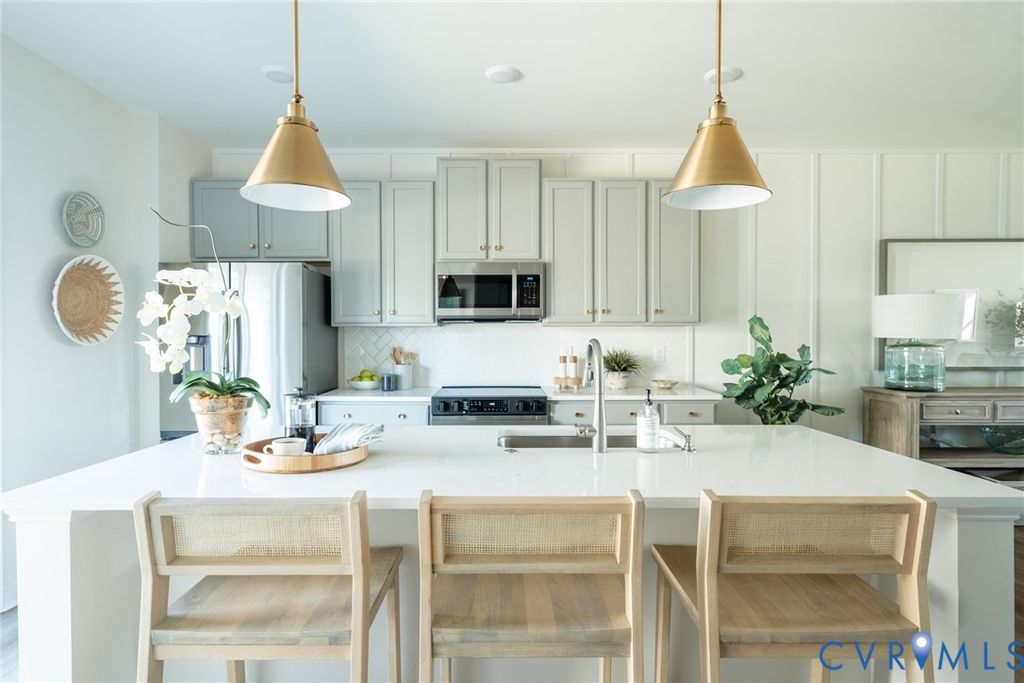 READY NOW! Welcome The Edge at Westchester Commons "” Chesterfield's go-to shopping and dining destination. This is more than a community where popular brands are your famous neighbors; it's a private oasis where amenities include an inviting park and included lawn care. Community amenities including a private gathering area with firepit, cornhole, grilling stations, a gazebo and dog park! Three-story Amelia floor plan townhome at The Edge at Westchester Commons offering over 2,000 sq ft with 3 bedrooms and 3.5 baths. Highlights include a spacious family room, large owner's suite with walk-in closet with roman shower. Adjacent guest bedroom with suite with full bath along with an entry-level guest suite with full bath, 5x14 suspended rear deck, oak staircase from the entry, and 2-car garage. Features include Spring valley Maple cabinets in the color Boardwalk, quartz countertops, LVP flooring in main areas, carpeted bedrooms, and a standard kitchen with vented microwave and gas range. *Photos are of a similar home.