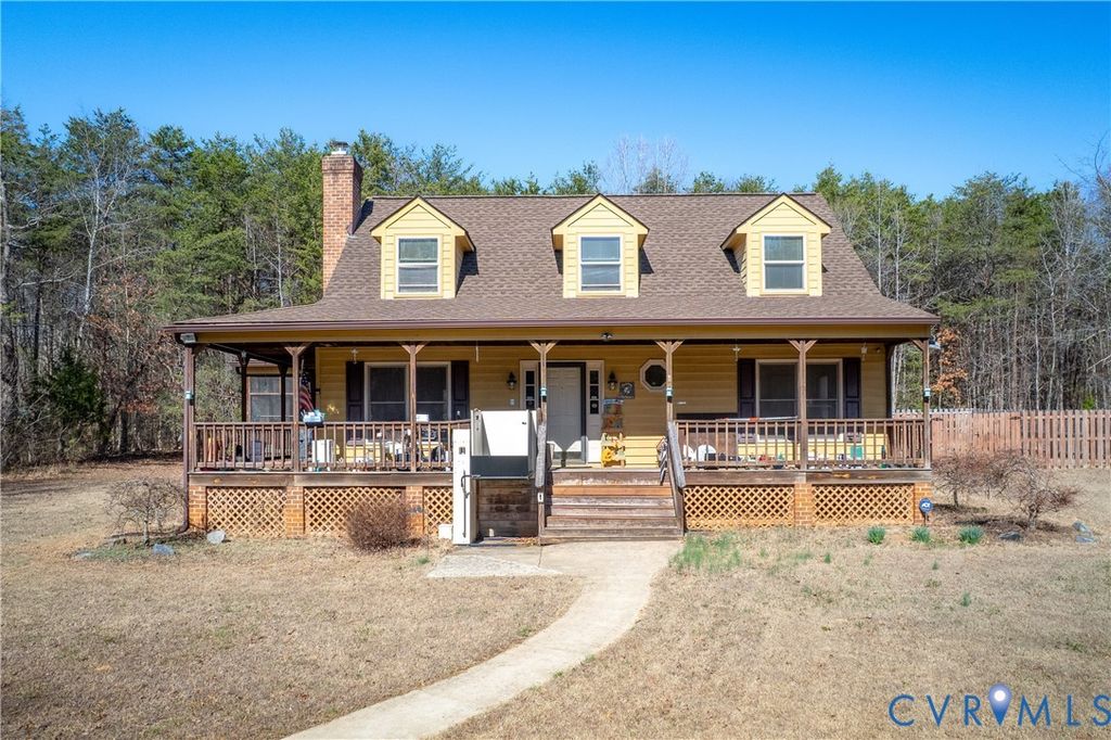 Seven private acres of potential and peace! Imagine starting your morning with coffee on the wide wrap around porch or winding down in the screened-in porch. This Cape Code home offers a classic country lifestyle where you can truly spread out and enjoy the fresh air. The backyard features an expansive deck added in 2017 with a 2022 awning for shade, while a 2021 rear fence provides a secure area for pets or gardening. Inside, the living room centers around a cozy brick fireplace, perfect for gathering during chilly Virginia evenings. The first floor primary suite is designed for convenience, offering two walk-in closets and an ensuite bathroom with a shower updated in 2023. You will find an impressive amount of storage space throughout the home to keep everything organized. Several big ticket items have already been handled, including a heat pump from 2020, a well pressure tank replaced in 2019, and a wired whole home generator from 2019. The refrigerator, washer, and dryer convey with the sale. The location is a true highlight, falling within the sought-after Goochland Schools district. Exploring the local area is a treat, as you are just a short drive from the James River for weekend kayaking and the Goochland Drive-In for a nostalgic night out. You can also spend your Saturdays visiting nearby spots like Bandit's Ridge or Grayhaven Winery, or head into the charming town of Louisa for local BBQ and farm stands. This home is being sold as-is, providing a great opportunity to put your personal touch on a property with solid bones and plenty of land. Come see the possibilities and walk the beautiful acreage for yourself, schedule your tour today!