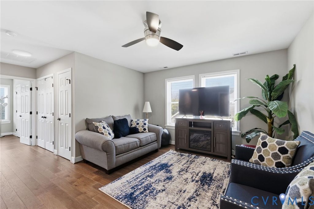 Welcome home to this incredible, like-new move-in ready Transitional in Henrico! Gorgeous finishes, fixtures, and paint scheme appoint this gem. There are engineered hardwood floors throughout the entire home. Ceramic tiled master and hall bathrooms. The living/dining/and kitchen spaces are all open concepts. Cozy up in the living room around your electric fireplace. Kitchen features all SS appliances, Quartz countertops, Island with seating for four, recessed lighting and more! Master bedroom features a large walk-in closet, lots of beautiful natural light, and an awesome En-Suite with double vanity with Quartz top. Upstairs loft area perfect for guests or as an additional living space. Both bedrooms upstairs have large closets, and the hall bathroom has a private toilet closet, and dual vanity with Quartz top. You'll be amazed by the ample storage and extra closet space throughout! Head out back and take in the seasons on the large deck appointed with a screened in gazebo and concrete patio for additional entertaining. All this while overlooking the partially shaded, fenced in backyard! Hurry, this one will not last!